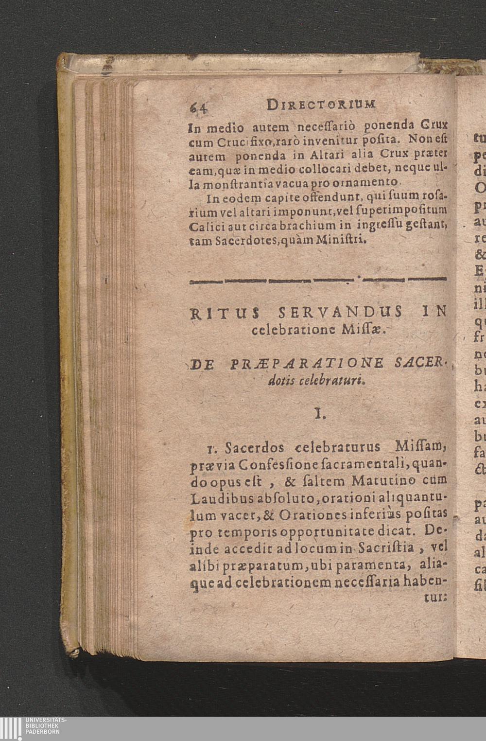 Directorivm Sacerdotale & Clericorum Specvlvm Insigni Pietatis Ac Devotionis Supellectili exuberans : In Quatuor Partes segregatum ... / Cura R. D. Matthiæ Kinchii J. U. Lti. Canonico ad S. Crucem Hildesii