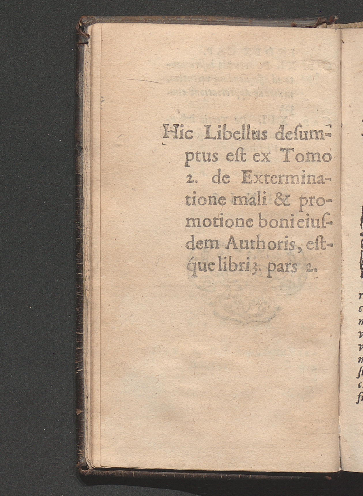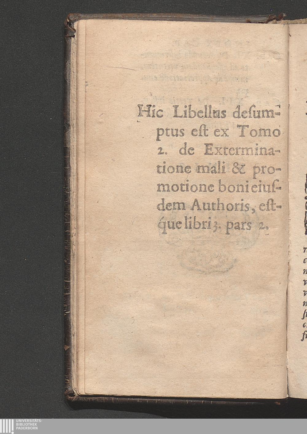 Hic Libellus desumptus est ex Tomo 2. de Exterminatione mali & promotione boni eiusdem[...]