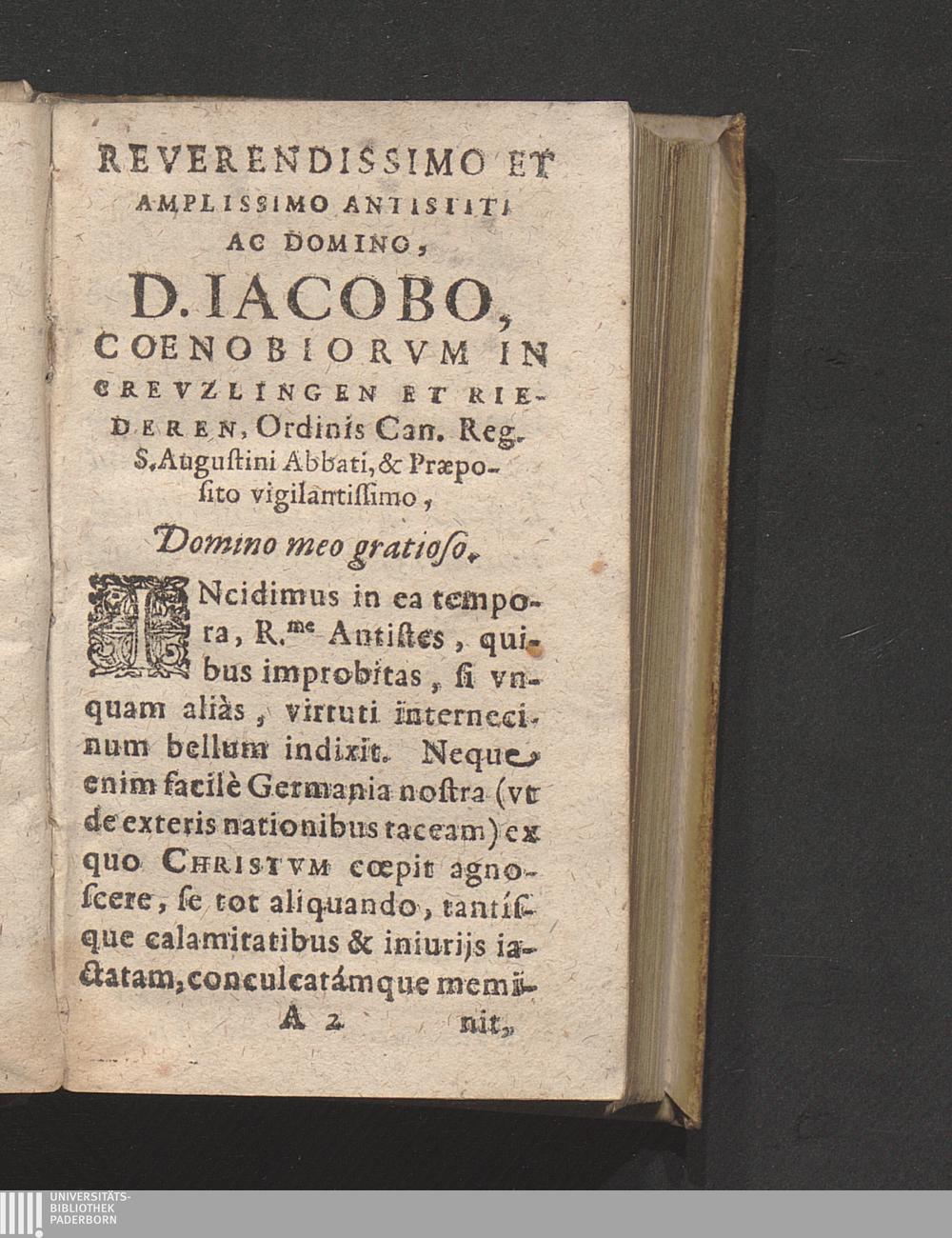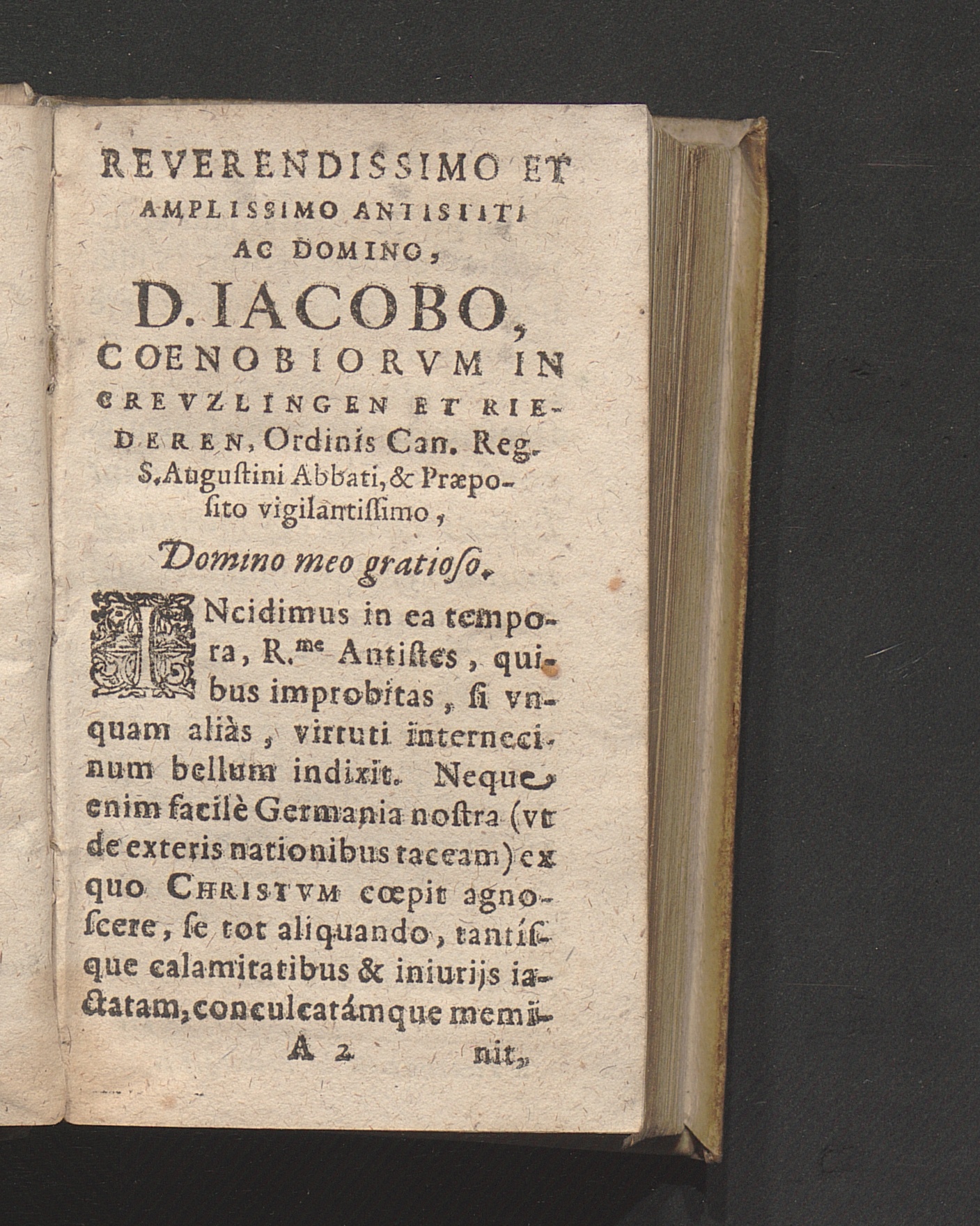 Reverendissimo Et Amplissimo Antistiti Ac Domino, D. Iacobo, Coenobiorvm In Crevzlingen[...]