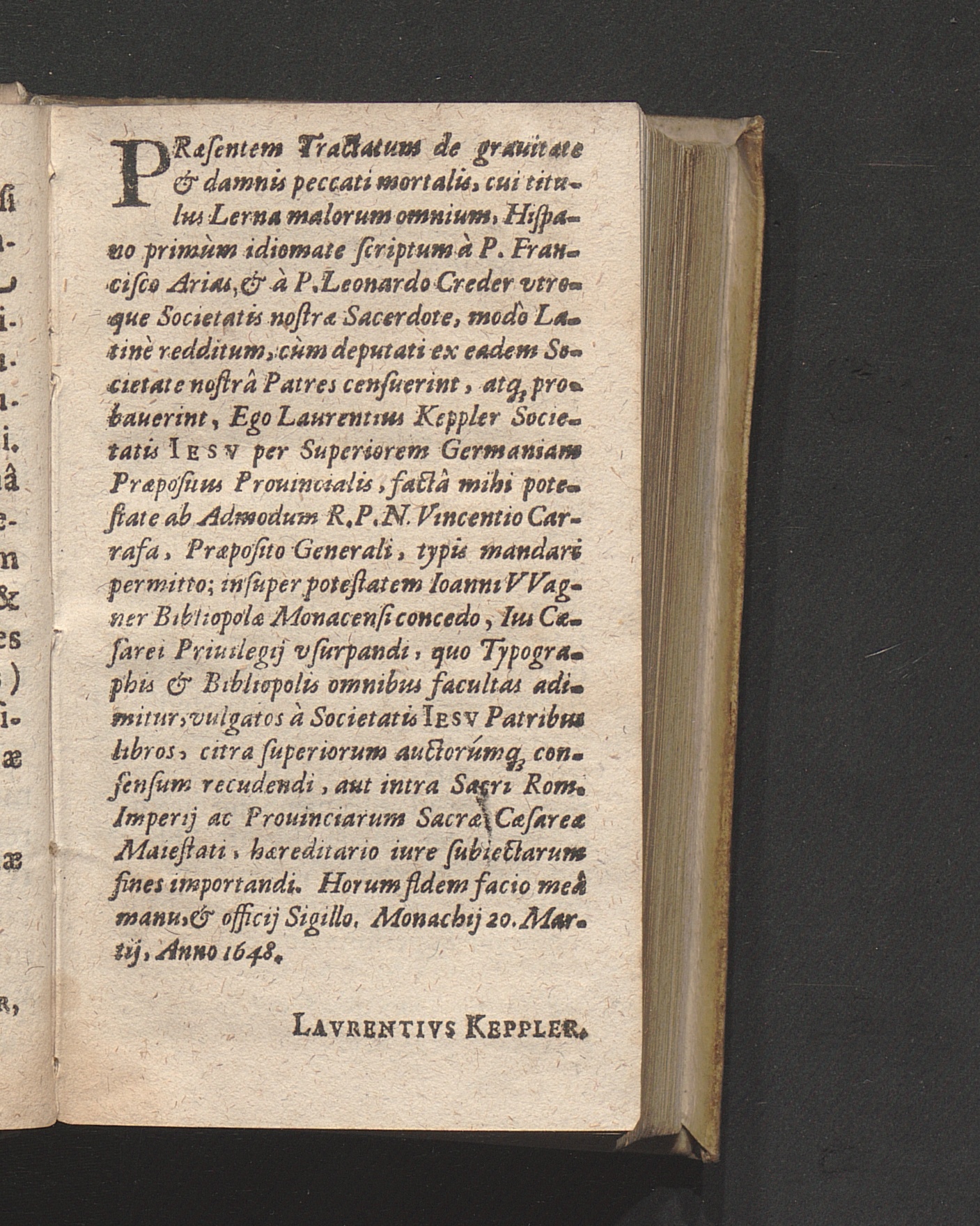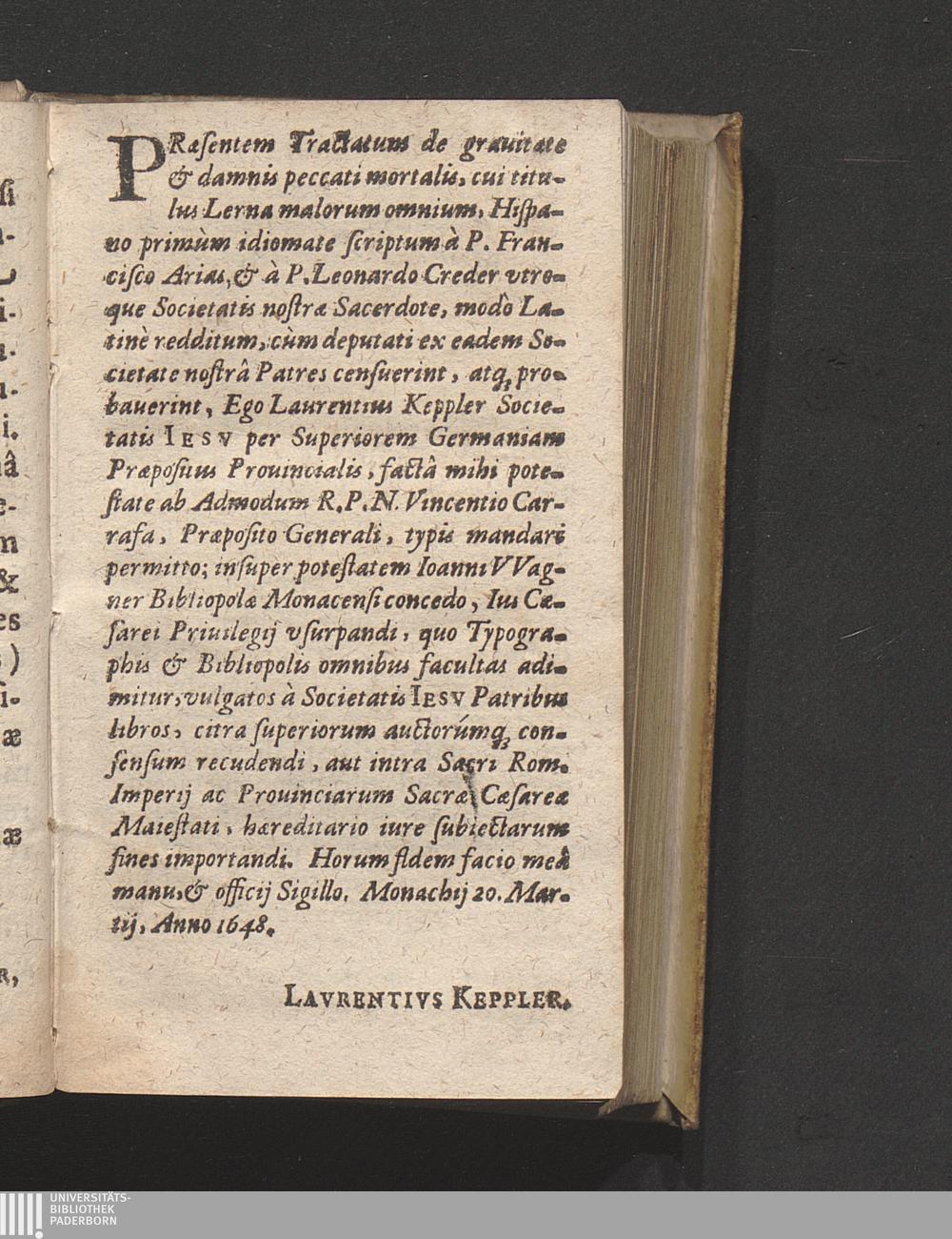 Lerna Malorvm Omnivm; Sive Gravitas, Et Damna Peccati Mortalis / Expensa, Orbiqve Proposita sermone Hispano A R.P. Francisco Arias; Latine Reddita A P. Leonardo Creder, Vtroque Societatis Jesv Sacerdote