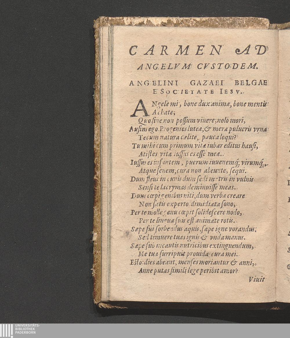 Carmen Ad Angelvm Cvstodem. Angelini Gazaei Belgae E Societate Iesv.