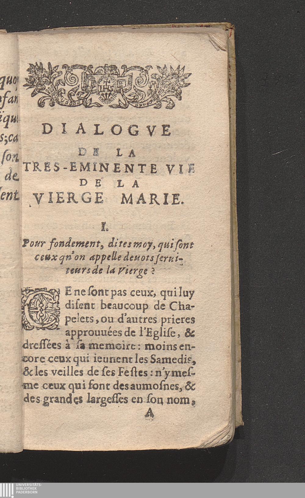 Dialogve De La Tres-Saincte Vie De La Vierge Marie. De ses eminentes perfections,[...]