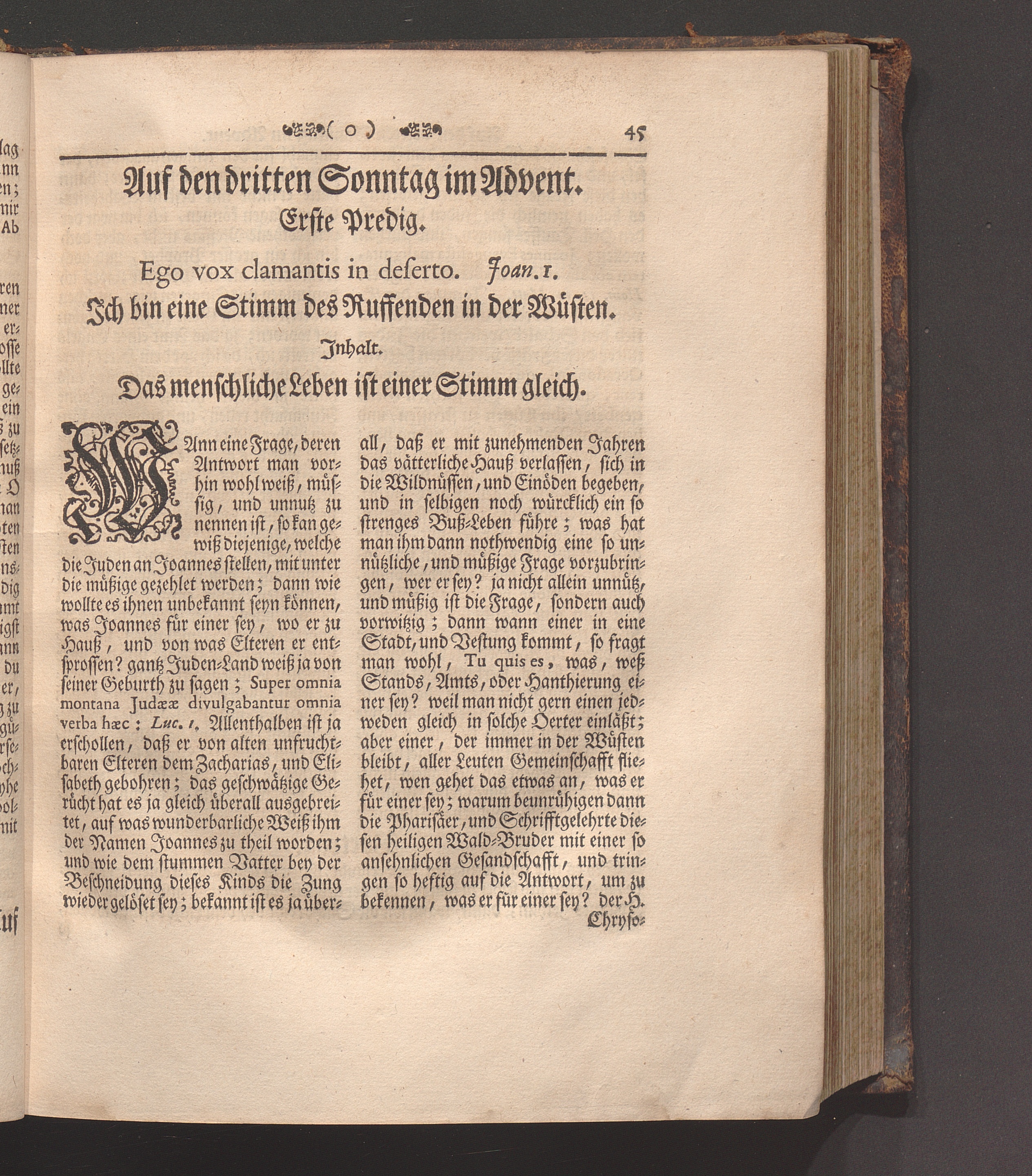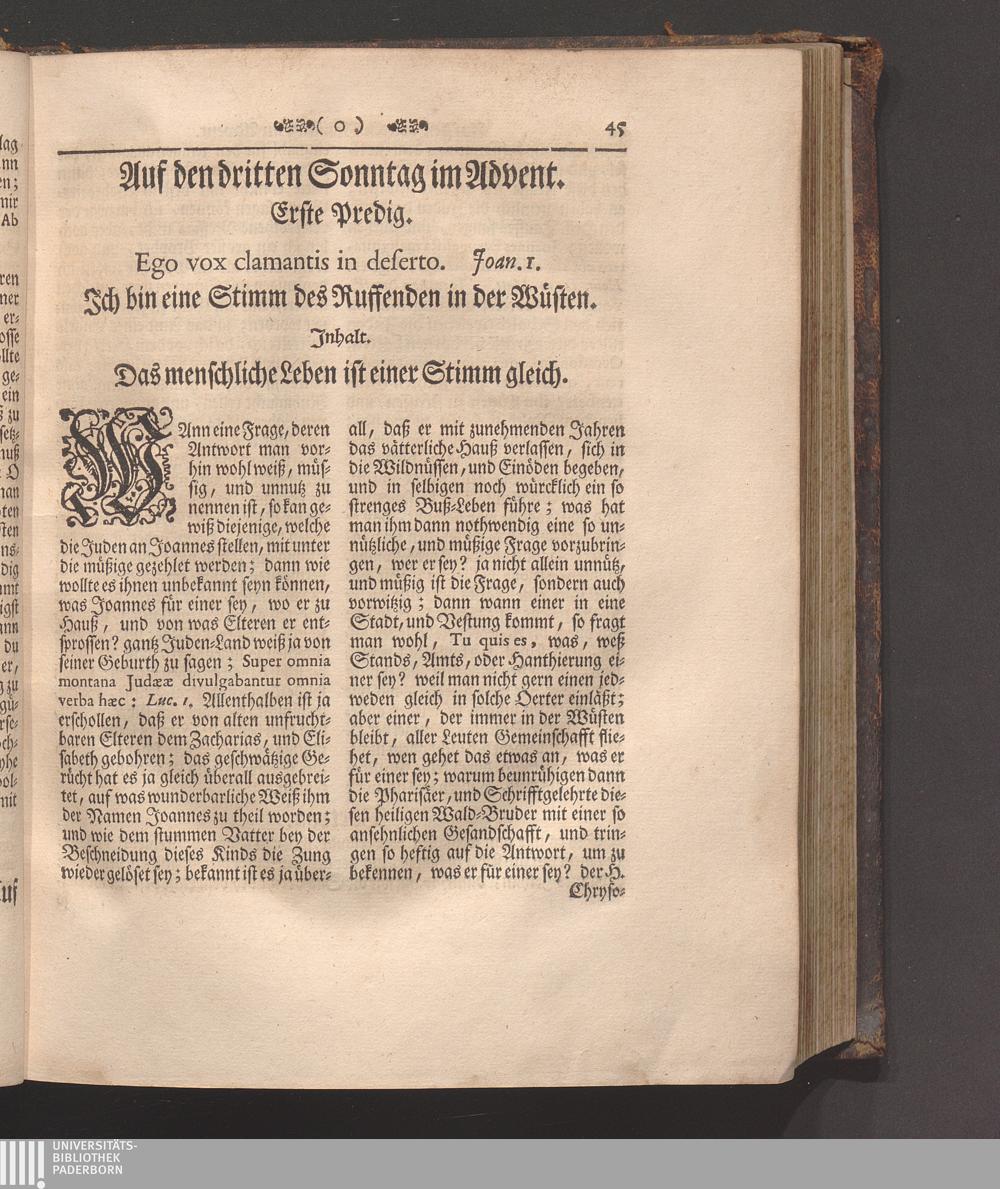 Erster Theil (1745) Enthaltet die Sonn-Tage vom ersten Advent bis den ersten in der Fasten/ und die Fest-Tage der Geburt/ Beschneidung/ und Erscheinung Christi/ wie auch der Heiligen Stephani und Joannis des Evangelisten