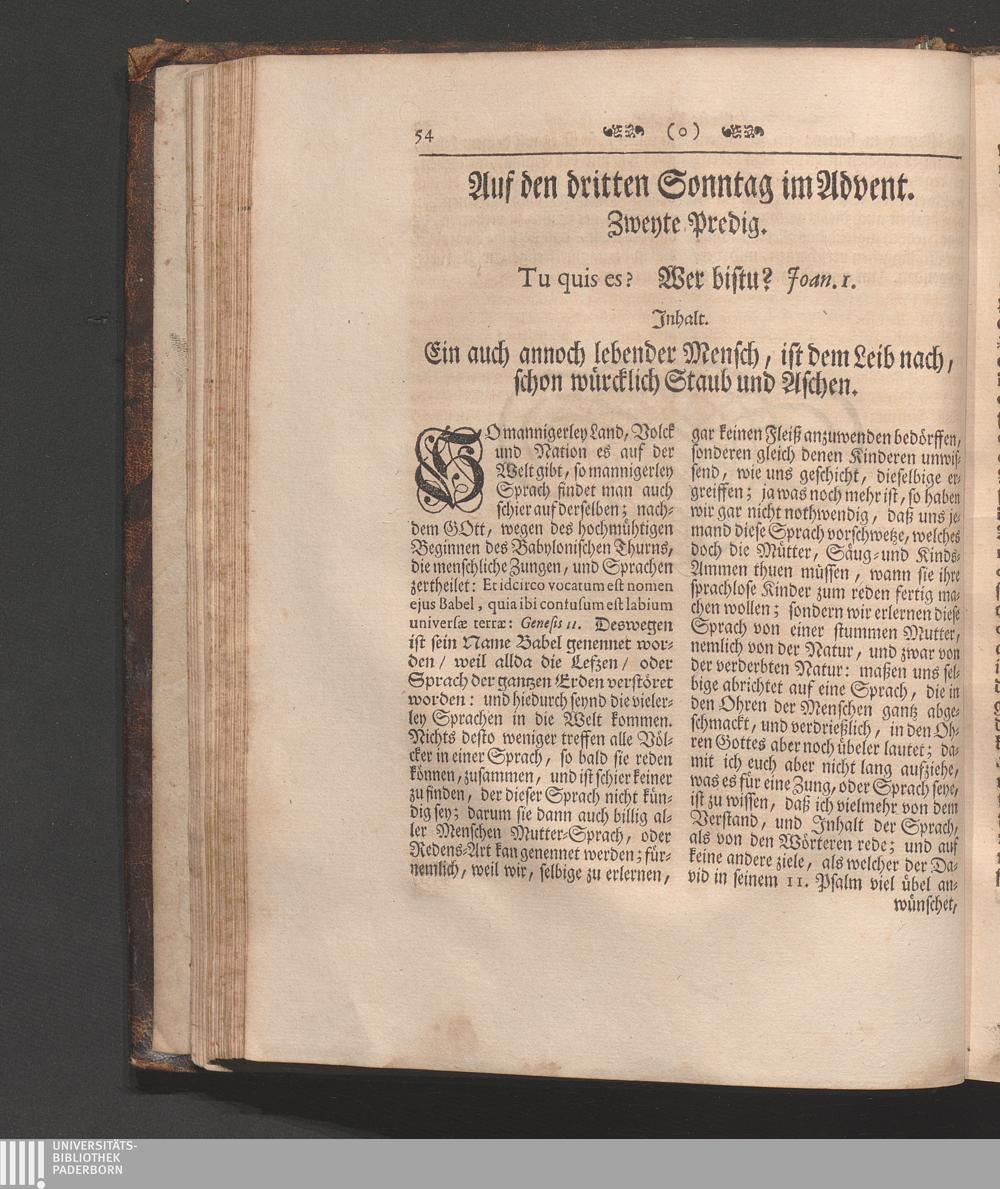 Erster Theil (1745) Enthaltet die Sonn-Tage vom ersten Advent bis den ersten in der Fasten/ und die Fest-Tage der Geburt/ Beschneidung/ und Erscheinung Christi/ wie auch der Heiligen Stephani und Joannis des Evangelisten