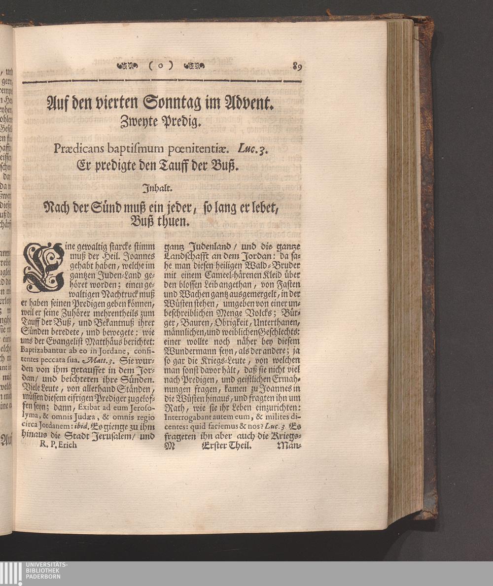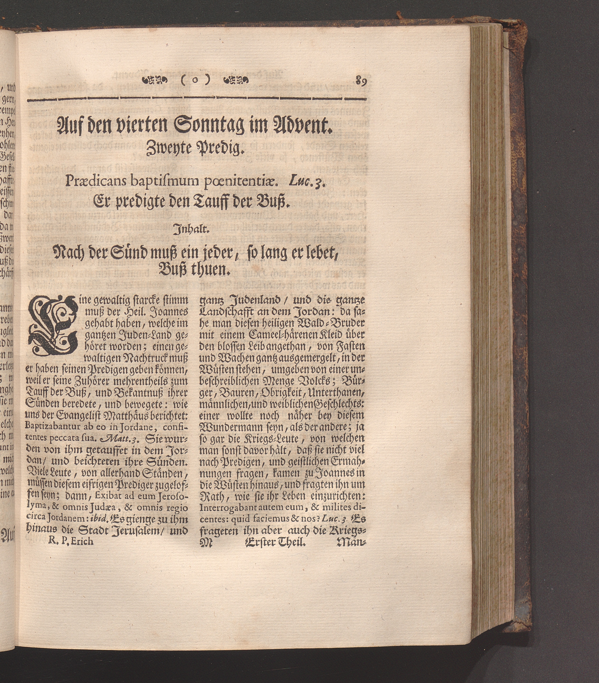 Erster Theil (1745) Enthaltet die Sonn-Tage vom ersten Advent bis den ersten in der Fasten/ und die Fest-Tage der Geburt/ Beschneidung/ und Erscheinung Christi/ wie auch der Heiligen Stephani und Joannis des Evangelisten
