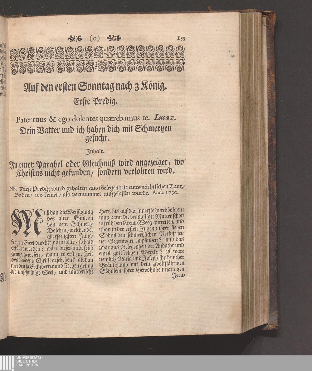 Erster Theil (1745) Enthaltet die Sonn-Tage vom ersten Advent bis den ersten in der Fasten/ und die Fest-Tage der Geburt/ Beschneidung/ und Erscheinung Christi/ wie auch der Heiligen Stephani und Joannis des Evangelisten