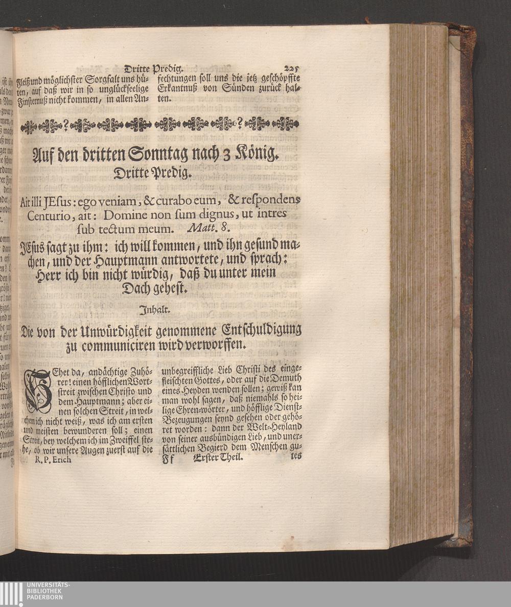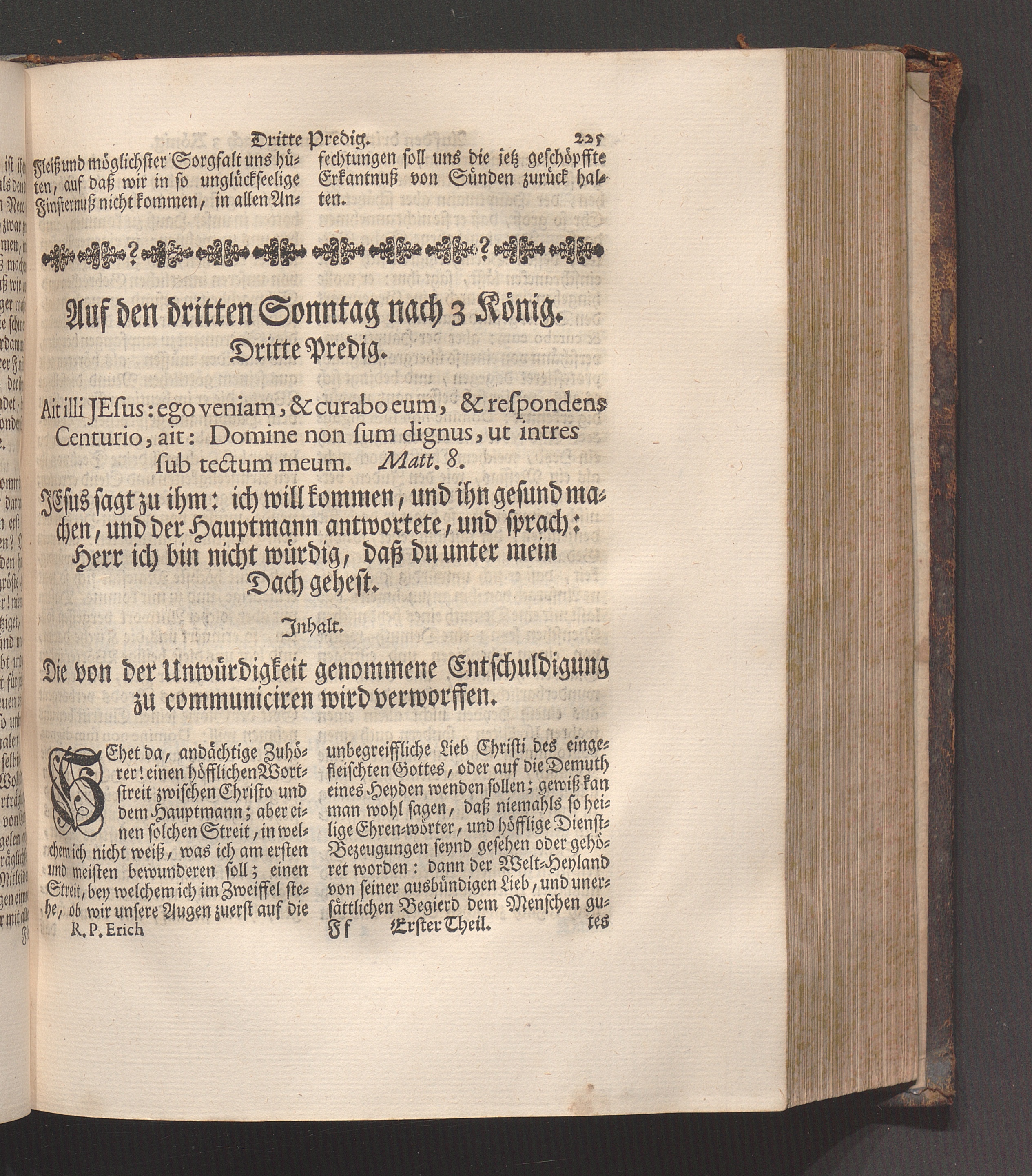 Erster Theil (1745) Enthaltet die Sonn-Tage vom ersten Advent bis den ersten in der Fasten/ und die Fest-Tage der Geburt/ Beschneidung/ und Erscheinung Christi/ wie auch der Heiligen Stephani und Joannis des Evangelisten