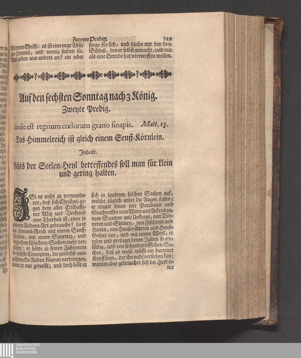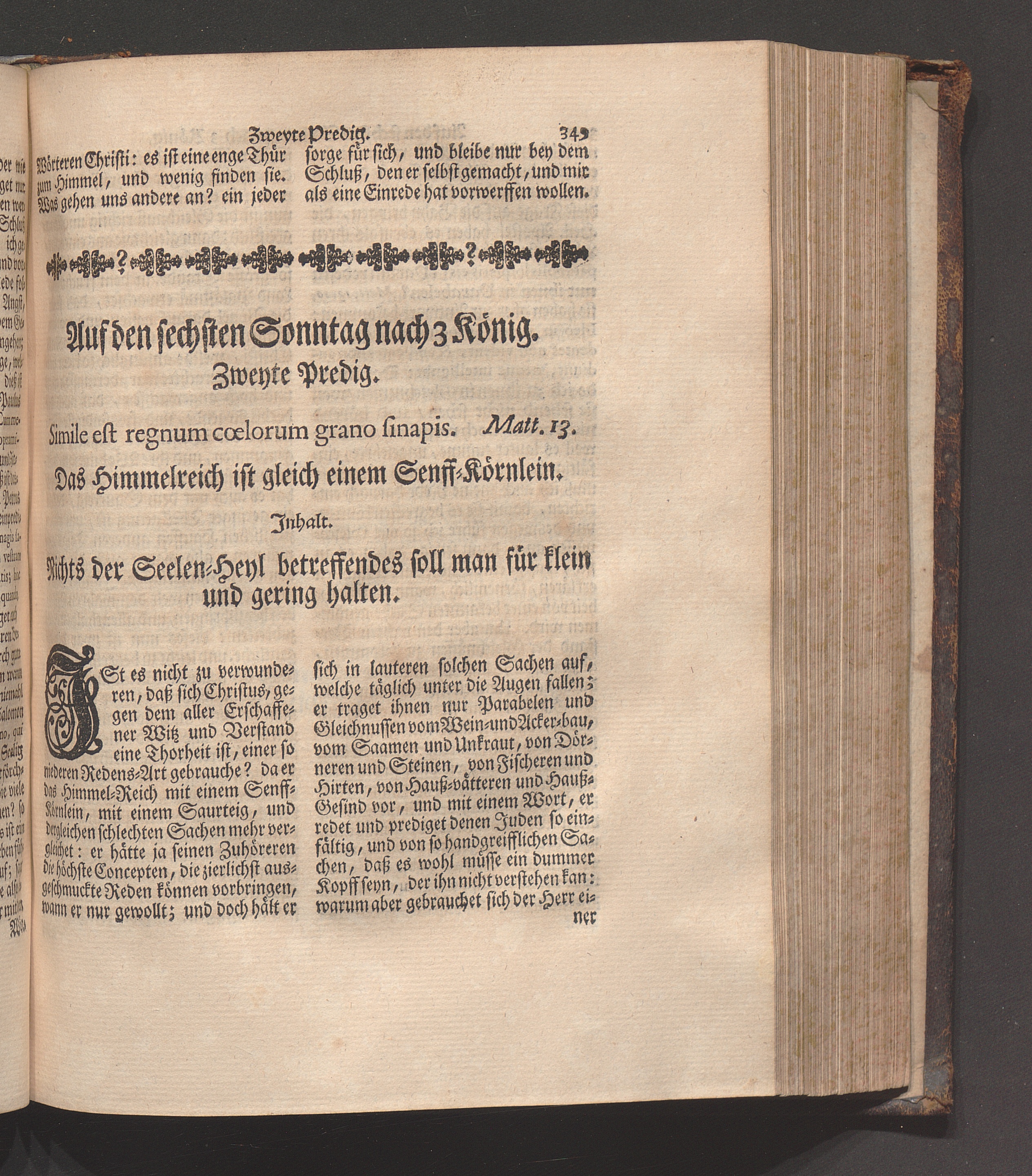 Erster Theil (1745) Enthaltet die Sonn-Tage vom ersten Advent bis den ersten in der Fasten/ und die Fest-Tage der Geburt/ Beschneidung/ und Erscheinung Christi/ wie auch der Heiligen Stephani und Joannis des Evangelisten