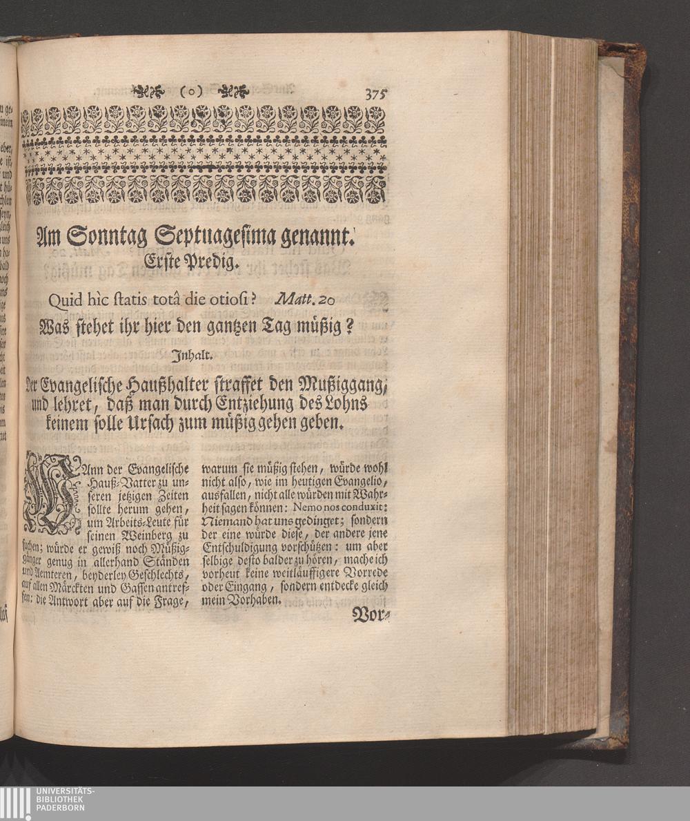 Erster Theil (1745) Enthaltet die Sonn-Tage vom ersten Advent bis den ersten in der Fasten/ und die Fest-Tage der Geburt/ Beschneidung/ und Erscheinung Christi/ wie auch der Heiligen Stephani und Joannis des Evangelisten