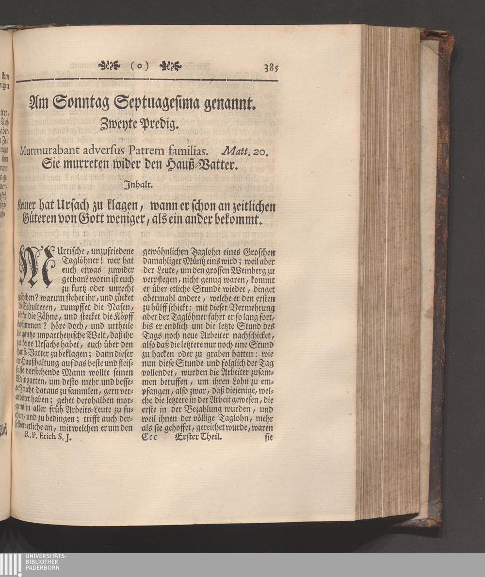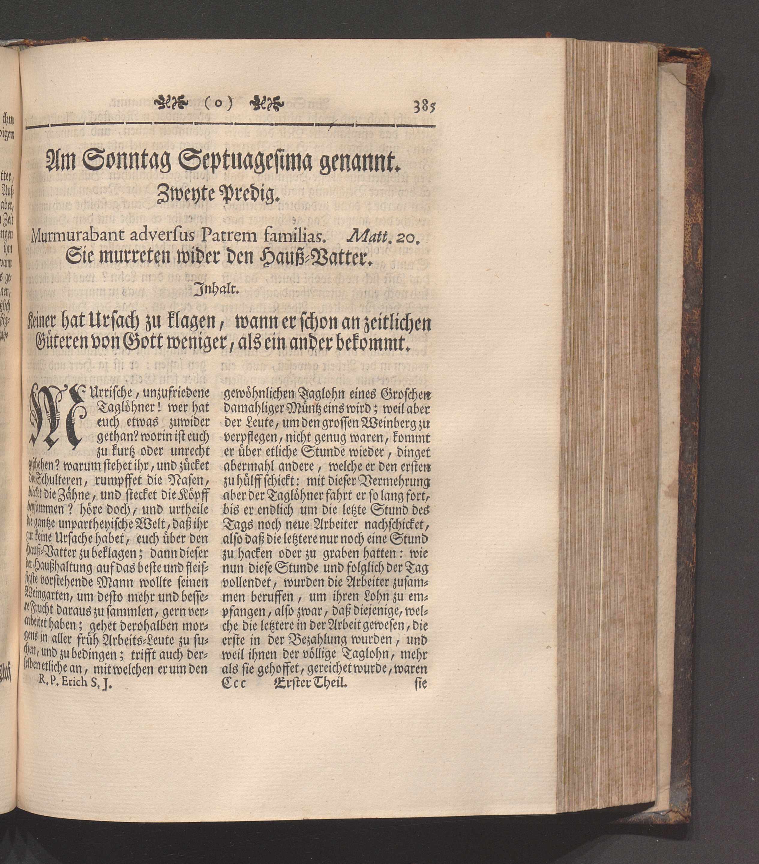 Erster Theil (1745) Enthaltet die Sonn-Tage vom ersten Advent bis den ersten in der Fasten/ und die Fest-Tage der Geburt/ Beschneidung/ und Erscheinung Christi/ wie auch der Heiligen Stephani und Joannis des Evangelisten
