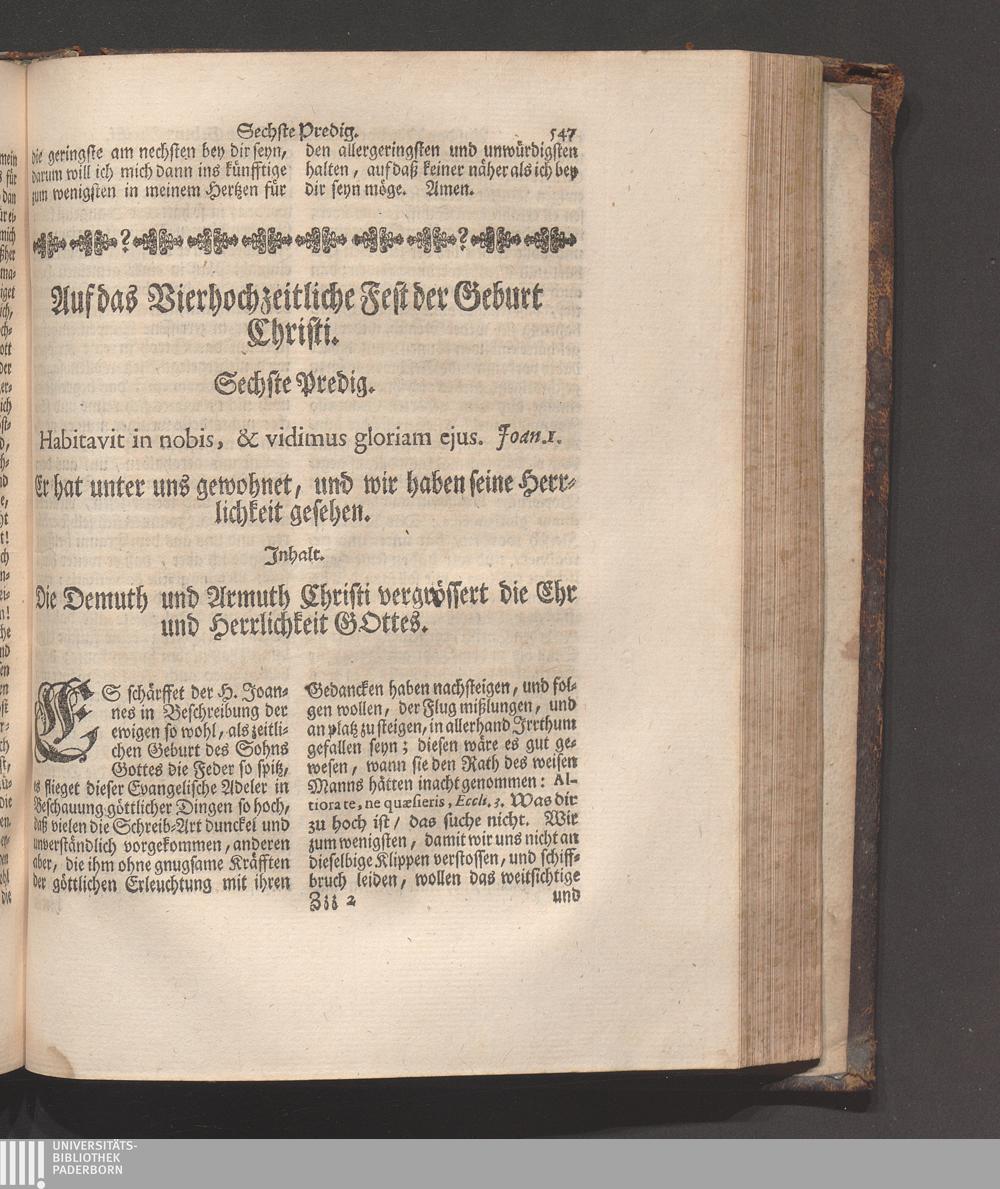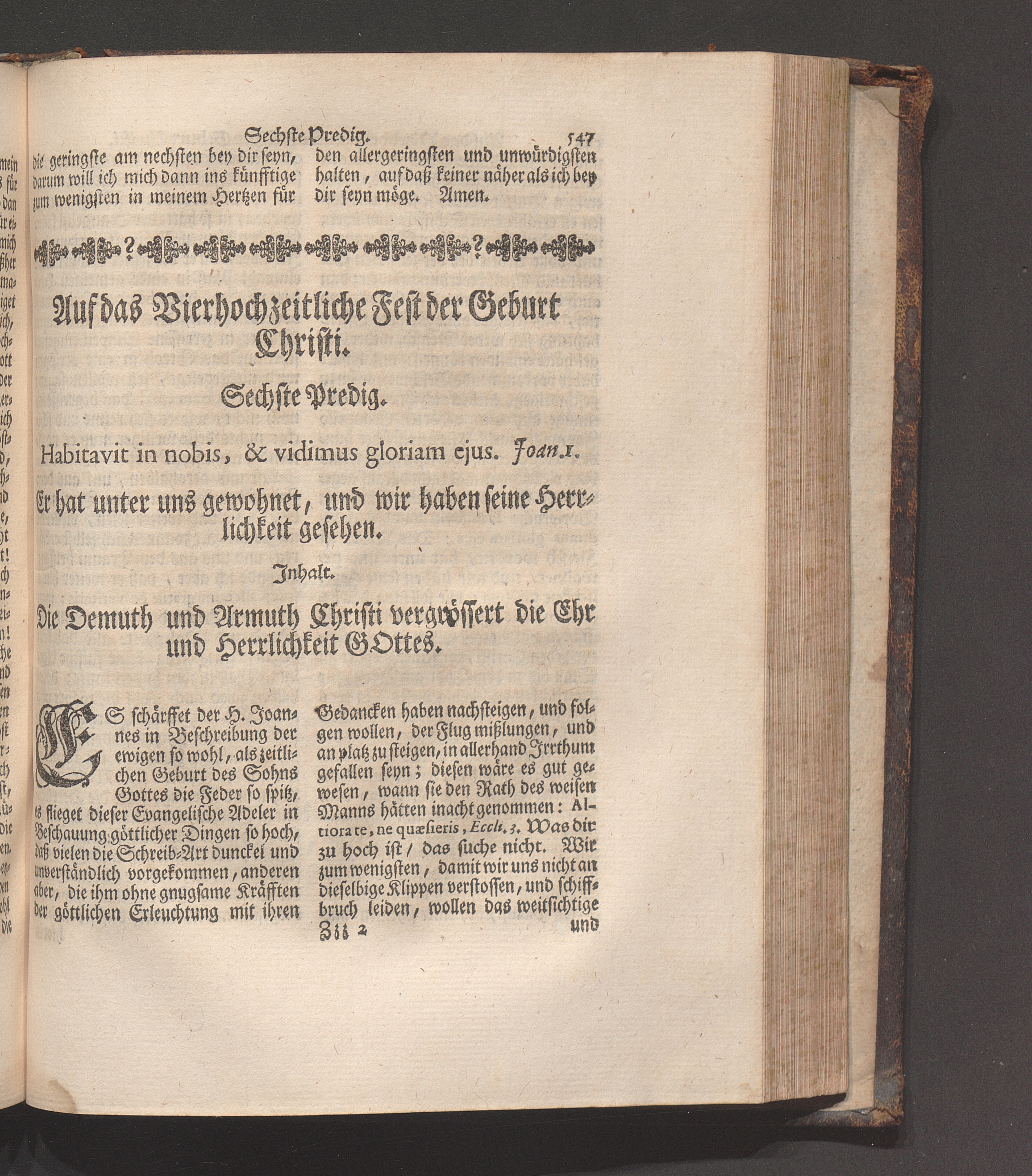 Erster Theil (1745) Enthaltet die Sonn-Tage vom ersten Advent bis den ersten in der Fasten/ und die Fest-Tage der Geburt/ Beschneidung/ und Erscheinung Christi/ wie auch der Heiligen Stephani und Joannis des Evangelisten
