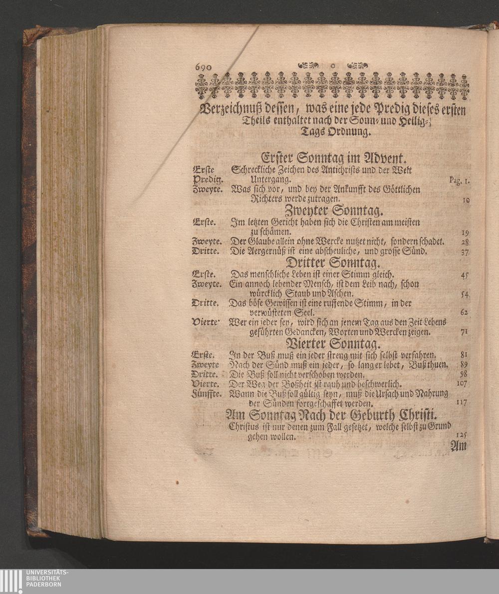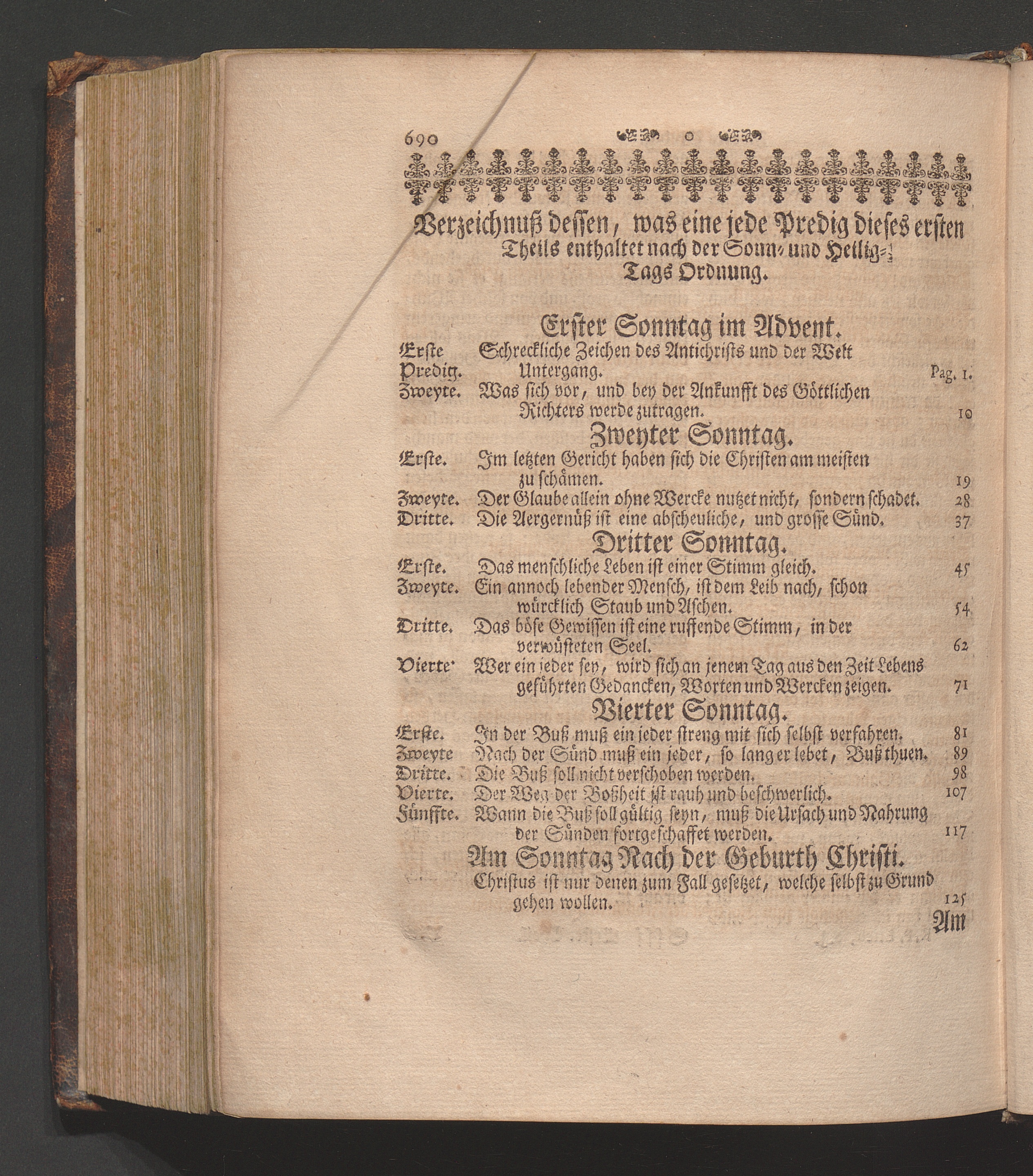 Erster Theil (1745) Enthaltet die Sonn-Tage vom ersten Advent bis den ersten in der Fasten/ und die Fest-Tage der Geburt/ Beschneidung/ und Erscheinung Christi/ wie auch der Heiligen Stephani und Joannis des Evangelisten
