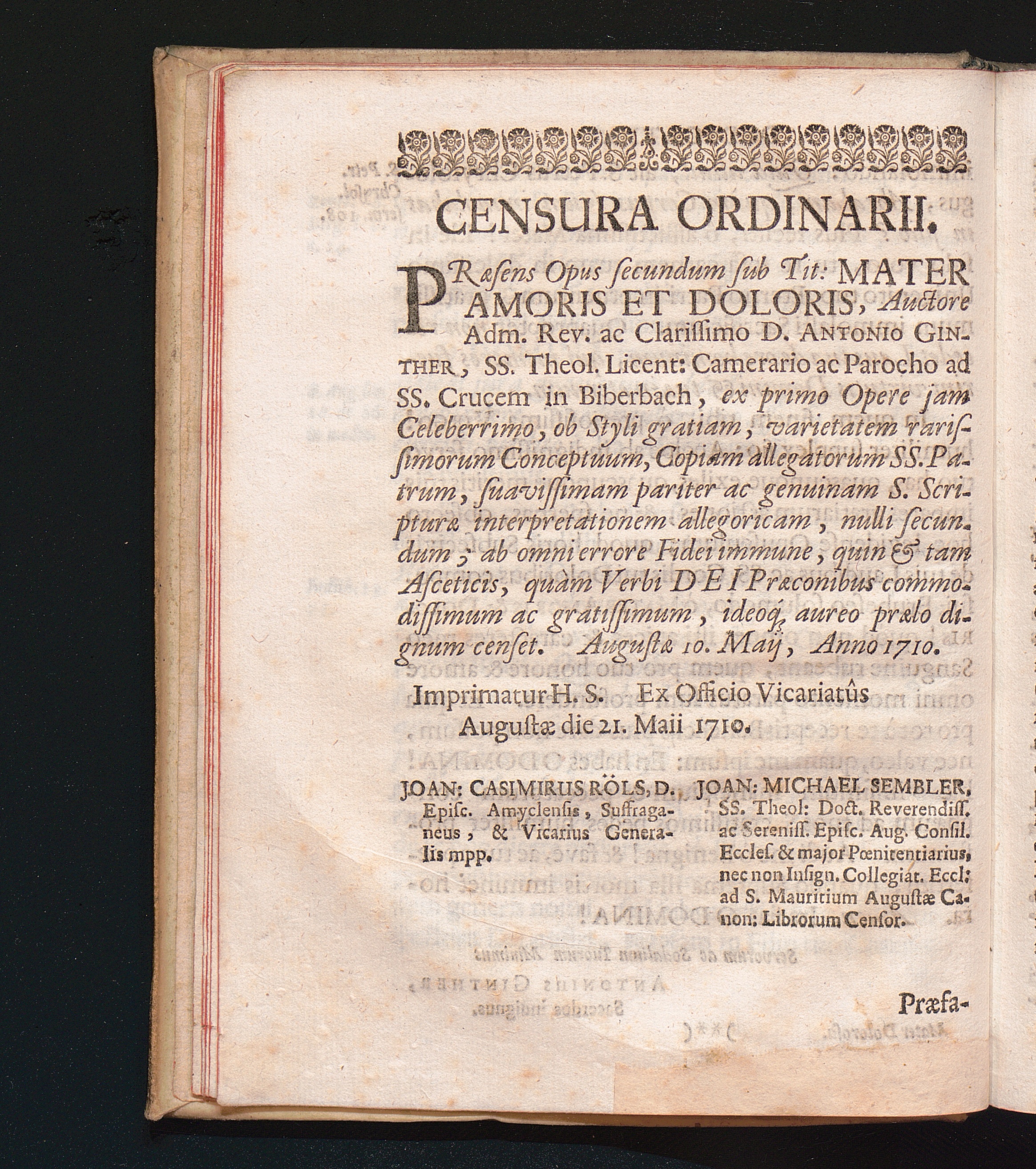 Mater Amoris Et Doloris : Quam Christus In Cruce Moriens Omnibus Ac Singulis Suis Fidelibus In Matrem Legavit: Ecce Mater Tua. Nunc Explicata per Sacra Emblemata ... / Auctore A. R. D. Antonio Ginther, SS. Theol. Lic. Camer. ac Parocho ad SS. Crucem in Biberbach