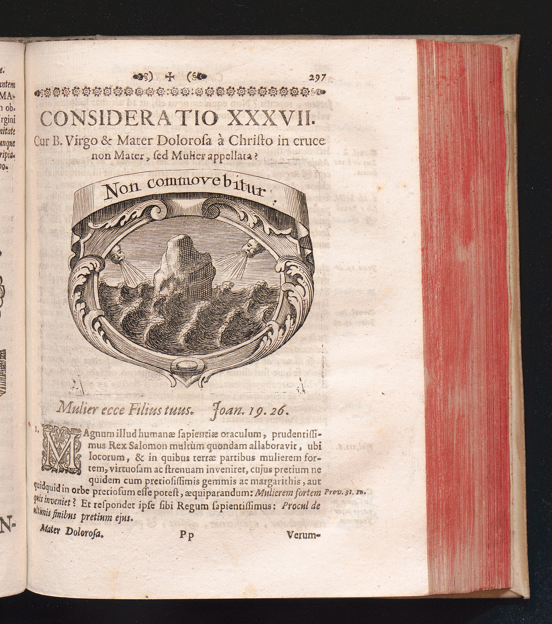 Mater Amoris Et Doloris : Quam Christus In Cruce Moriens Omnibus Ac Singulis Suis Fidelibus In Matrem Legavit: Ecce Mater Tua. Nunc Explicata per Sacra Emblemata ... / Auctore A. R. D. Antonio Ginther, SS. Theol. Lic. Camer. ac Parocho ad SS. Crucem in Biberbach