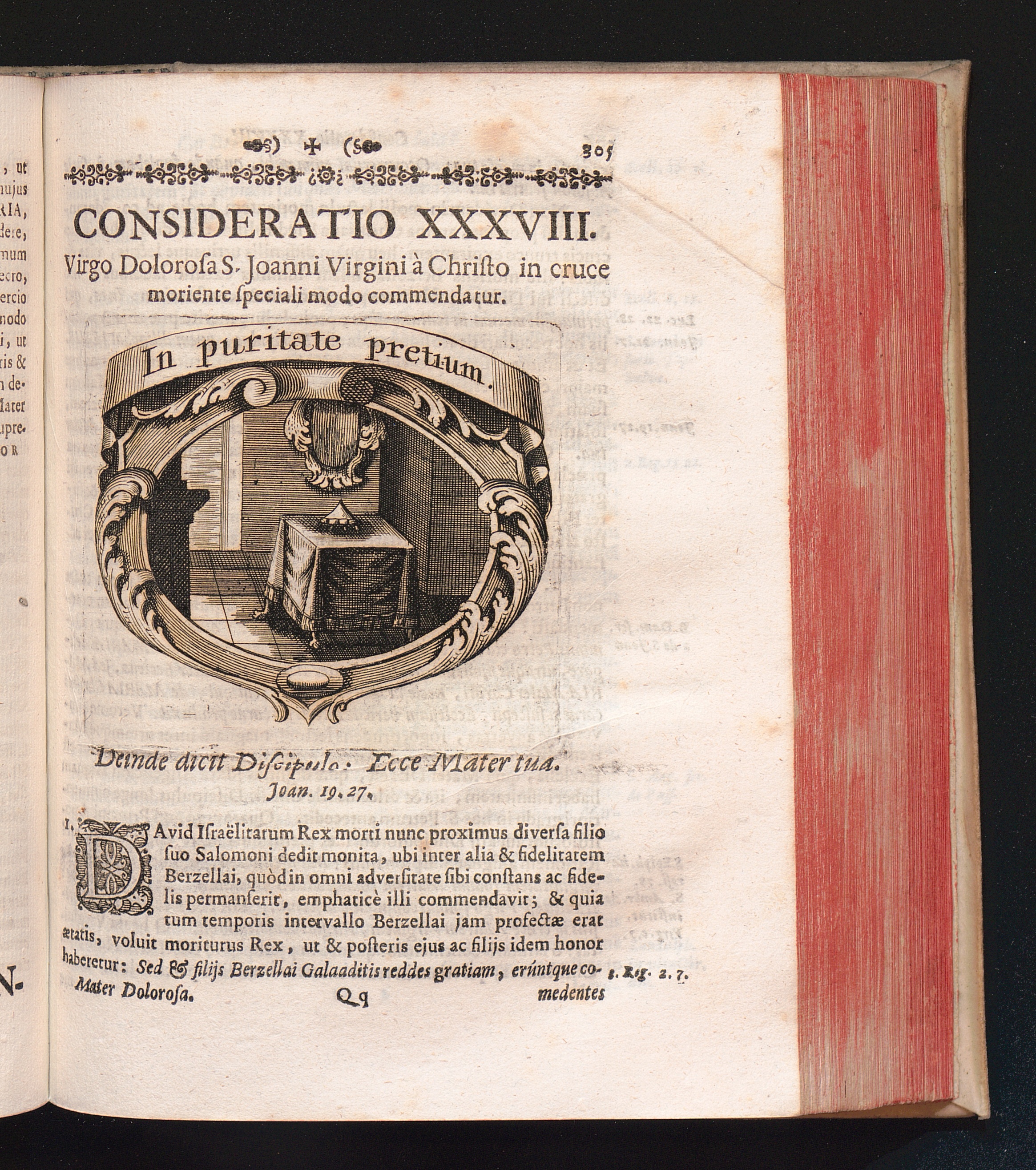 Mater Amoris Et Doloris : Quam Christus In Cruce Moriens Omnibus Ac Singulis Suis Fidelibus In Matrem Legavit: Ecce Mater Tua. Nunc Explicata per Sacra Emblemata ... / Auctore A. R. D. Antonio Ginther, SS. Theol. Lic. Camer. ac Parocho ad SS. Crucem in Biberbach