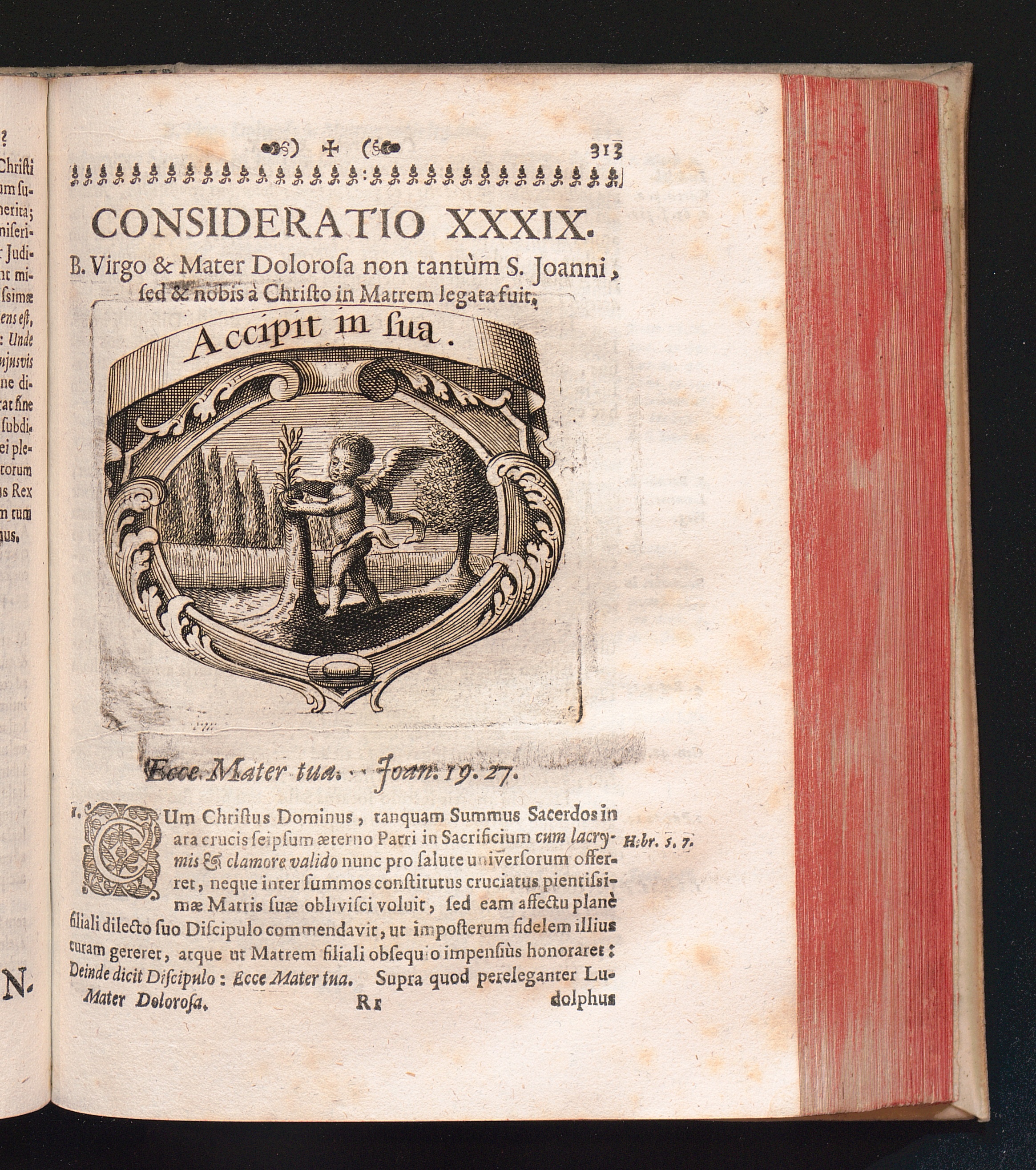 Mater Amoris Et Doloris : Quam Christus In Cruce Moriens Omnibus Ac Singulis Suis Fidelibus In Matrem Legavit: Ecce Mater Tua. Nunc Explicata per Sacra Emblemata ... / Auctore A. R. D. Antonio Ginther, SS. Theol. Lic. Camer. ac Parocho ad SS. Crucem in Biberbach