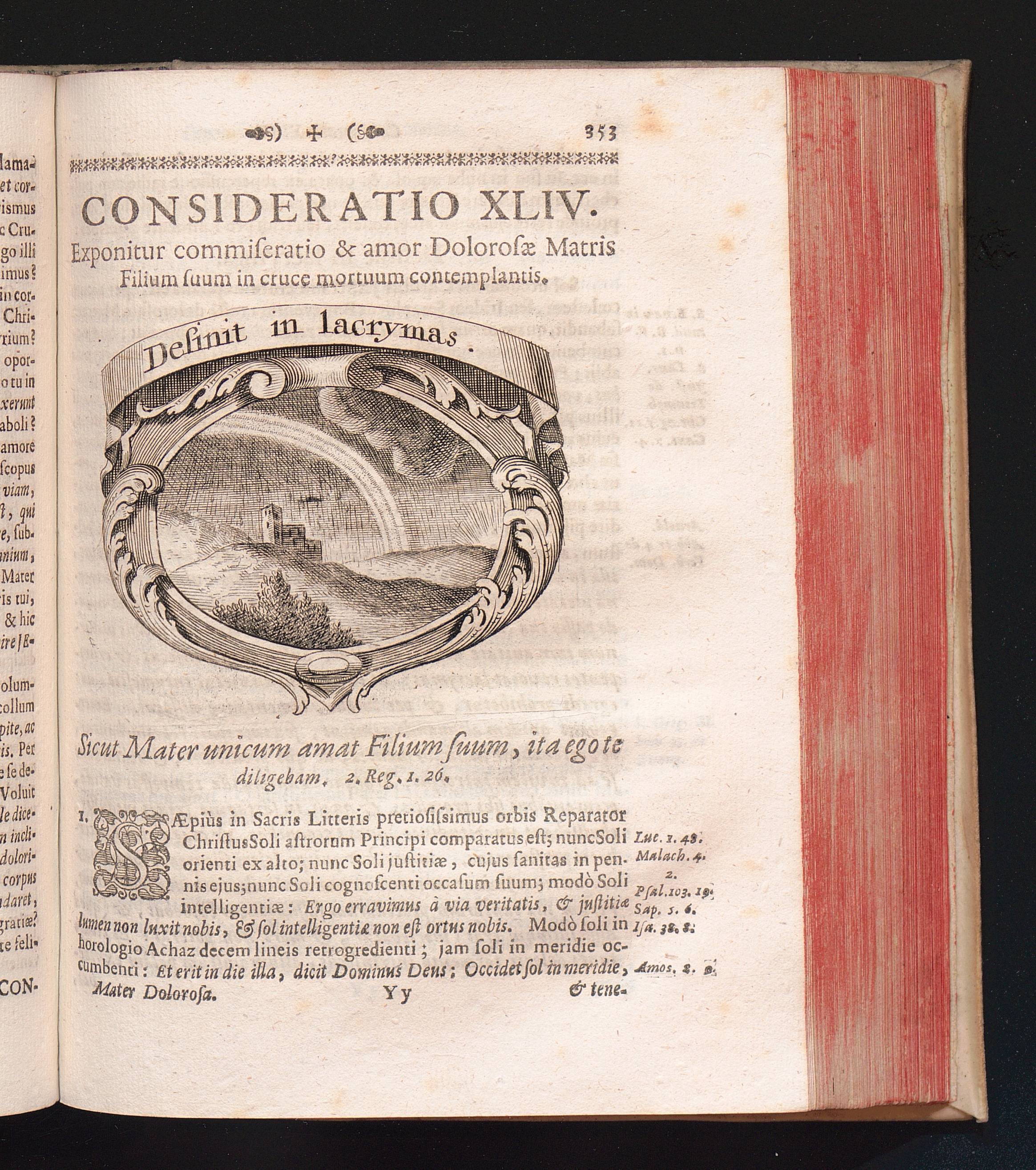 Mater Amoris Et Doloris : Quam Christus In Cruce Moriens Omnibus Ac Singulis Suis Fidelibus In Matrem Legavit: Ecce Mater Tua. Nunc Explicata per Sacra Emblemata ... / Auctore A. R. D. Antonio Ginther, SS. Theol. Lic. Camer. ac Parocho ad SS. Crucem in Biberbach