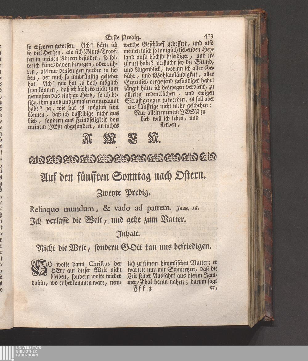 Zweyte Predig. Nicht die Welt, sondern Gott kan uns befriedigen.