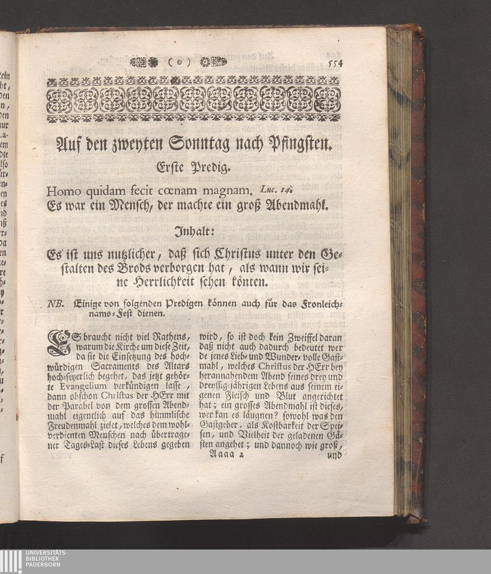 Erste Predig. Es ist uns nützlicher, daß sich Christus unter den Gestalten des Brods[...]