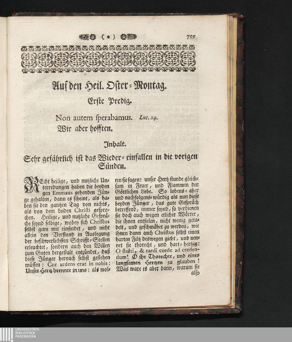Zweyter Theil (1748) Enthaltet die Sonn-Tage vom ersten in der Fasten biß den zweyten nach Pfingsten einschließlich, wie auch Char-Freytag, und Oster-Montag