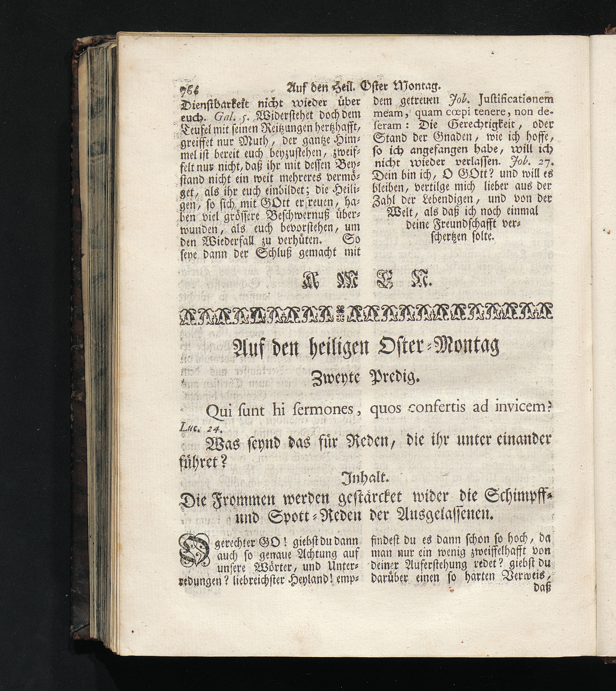 Zweyter Theil (1748) Enthaltet die Sonn-Tage vom ersten in der Fasten biß den zweyten nach Pfingsten einschließlich, wie auch Char-Freytag, und Oster-Montag