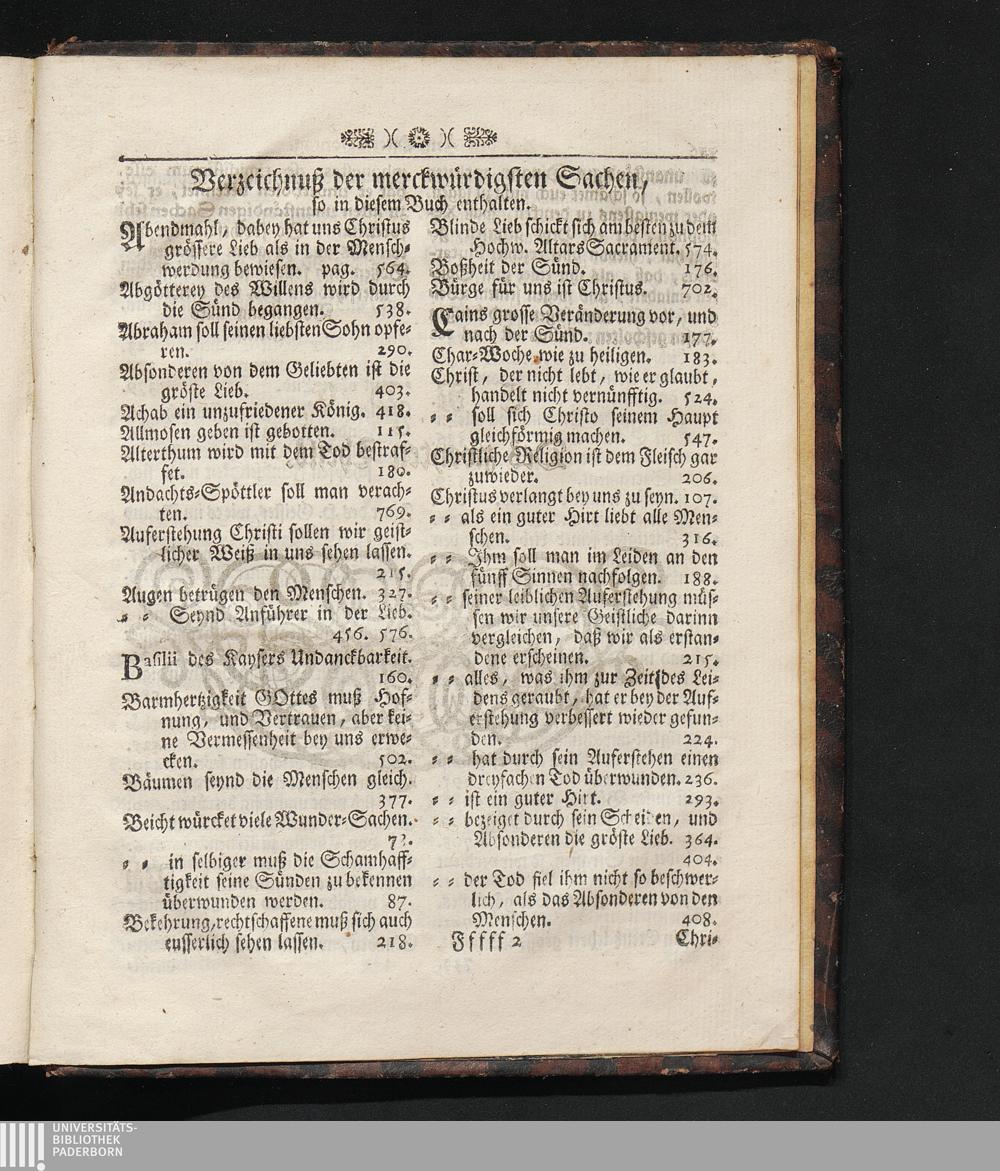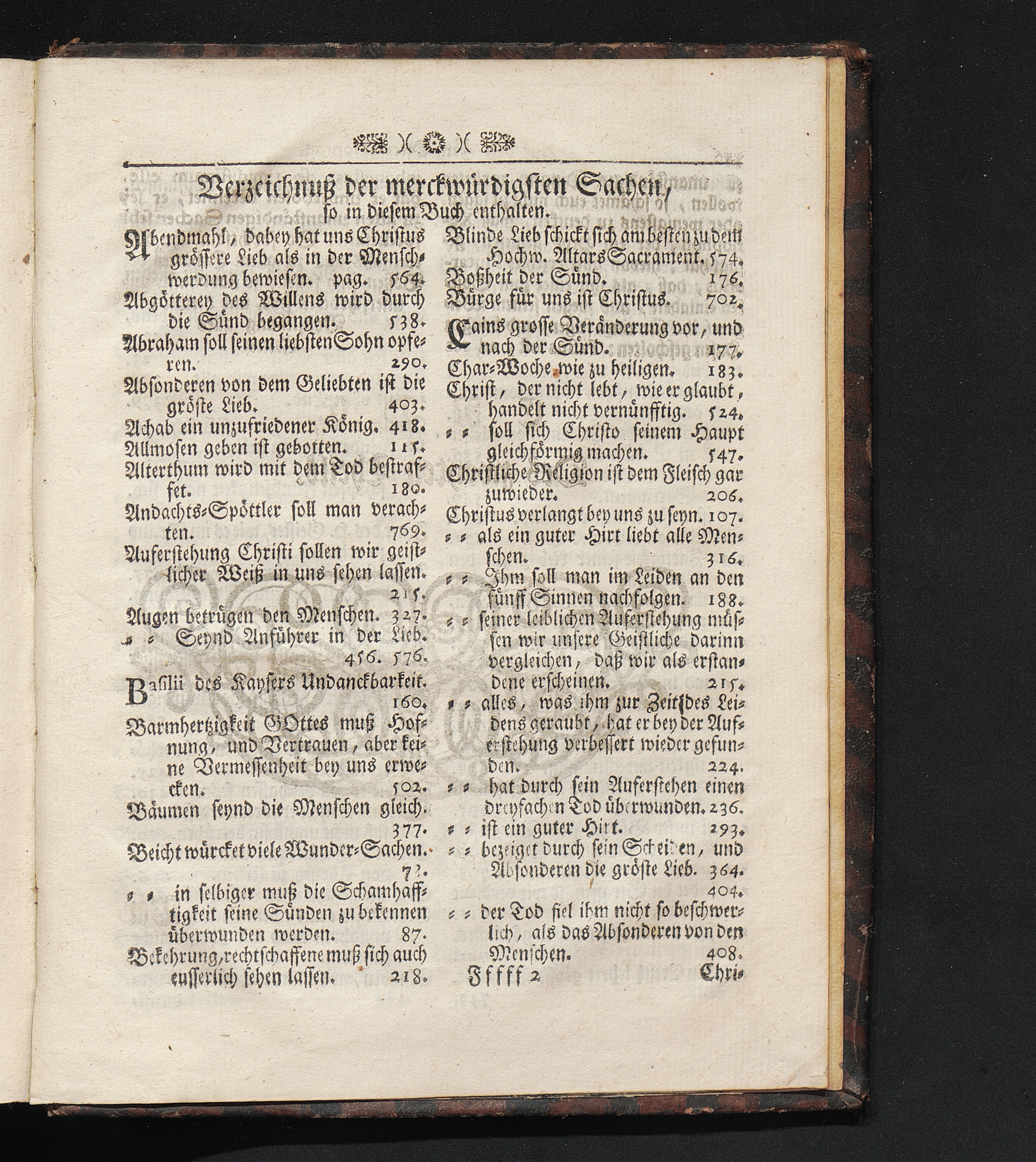 Verzeichnuß der merckwürdigsten Sachen, so in diesem Buch enthalten.