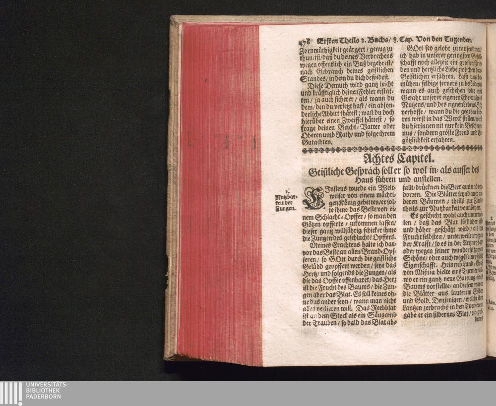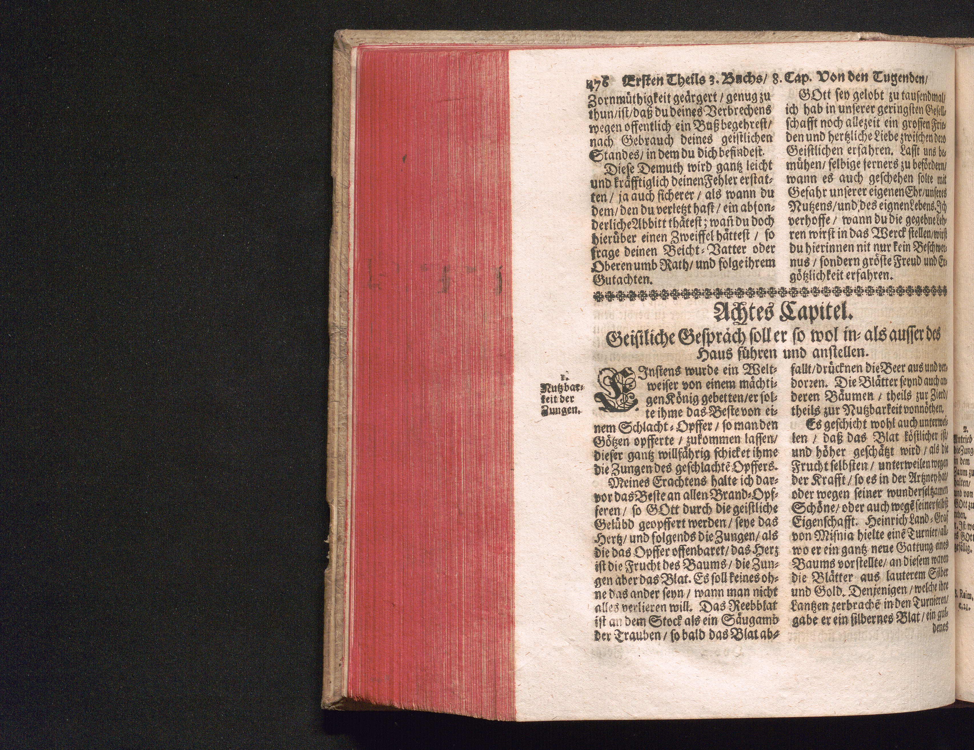 Achtes Capittel. Geistliche Gespräch soll er so wohl in als ausser deß Closters führen[...]