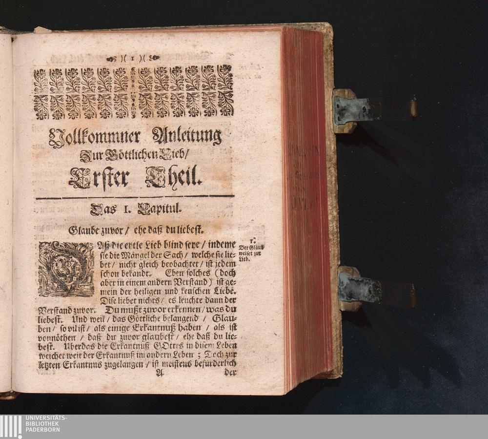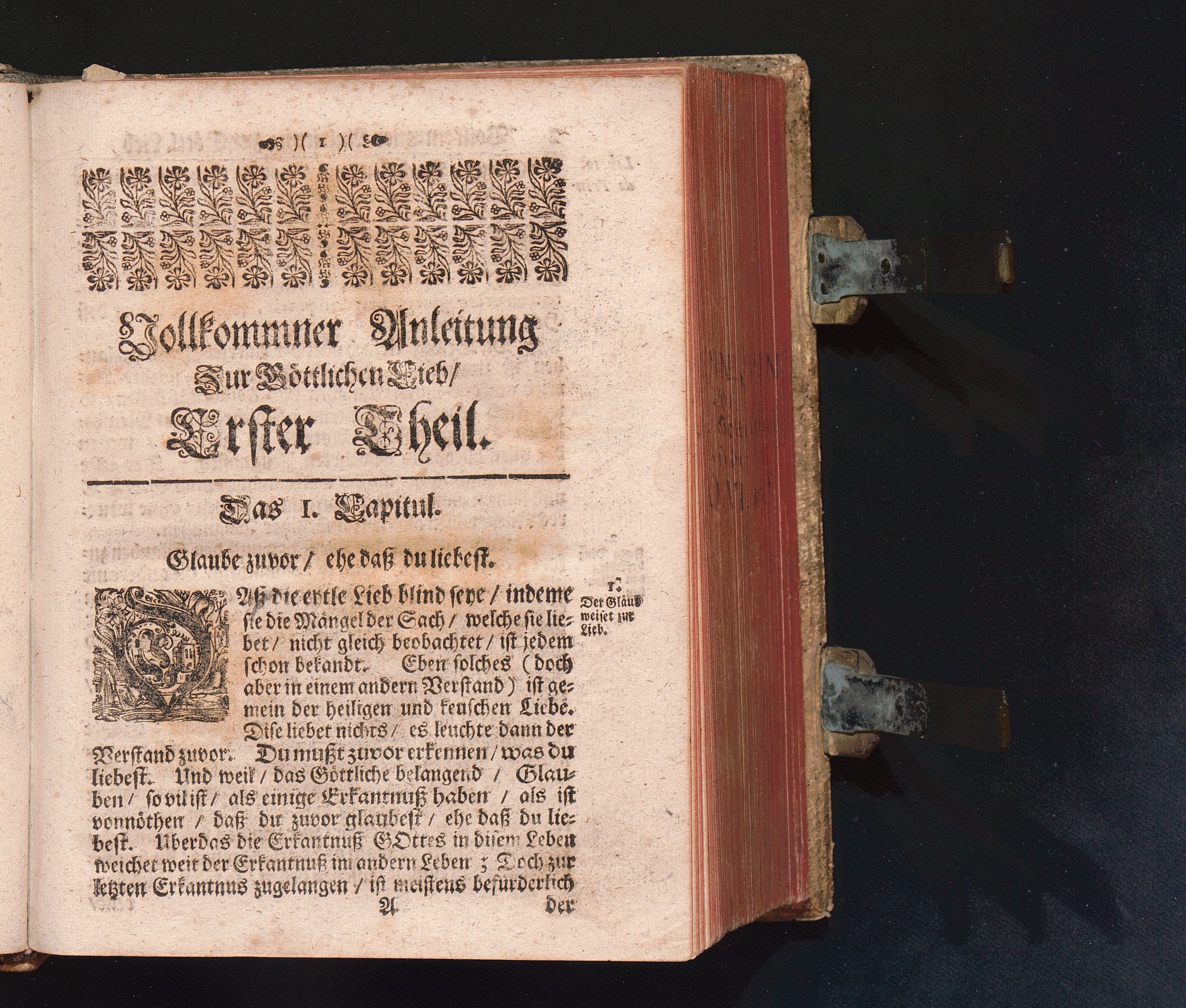 Göttlicher Liebs-Zeiger/ Das ist: Vollkommniste und außerlesniste Anleitung Zur Göttlichen Lieb : In unterschidlichen schönen Discursen/ Historien/ Sinn- und Lehr-reichen Concepten auß H. Schrifft/ denen heiligen Vättern und andern geistreichen Lehrern/ Zu embsiger Nachfolg beyderley Geschlechts/ jeglichen Stands/ Geistlich- und Weltlichen Liebhabern Gottes; Wie auch Zu höchst dienlichem Gebrauch so wohl in denen Clöstern über Tisch oder sonsten zu lesen; als auch denen Pfarrherren und Seelsorgern/ in denen Hertzen ihrer untergebenen Schäfflein die Lieb gegen Gott einzupflantzen und zu erhalten / anfänglich in Frantzösischer und Lateinischer Sprach vorgetragen von R.P. Petro Pennequin, Societatis Jesu Theologo, anjetzo aber zu desto mehrerer Ausbreitung des Lobs und der Lieb Gottes in das Teutsche übersetzet von R.P. Antonio Muzenhard, Regulierten Chor-Herrn zum H. Creutz in Augspurg