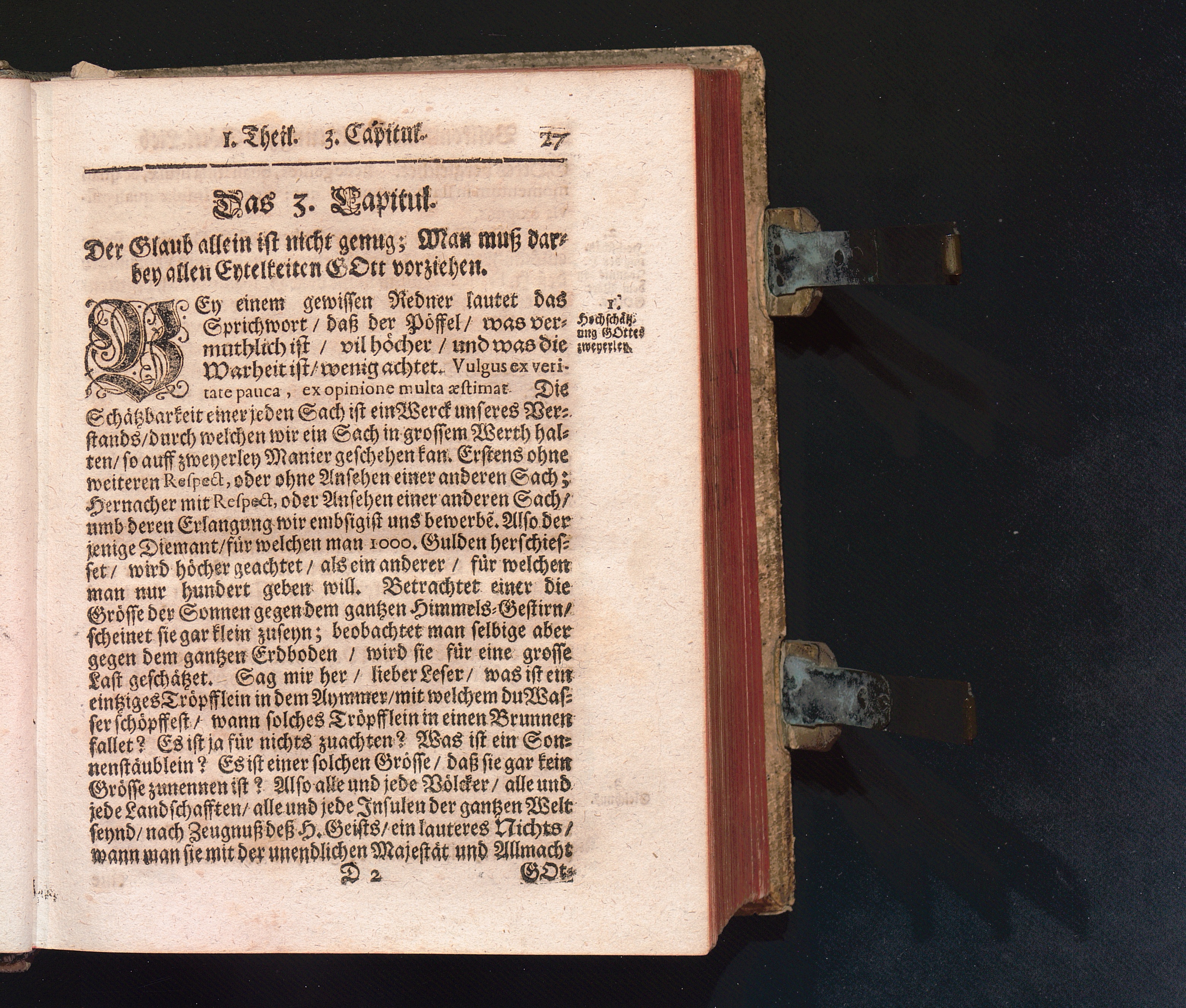 Göttlicher Liebs-Zeiger/ Das ist: Vollkommniste und außerlesniste Anleitung Zur Göttlichen Lieb : In unterschidlichen schönen Discursen/ Historien/ Sinn- und Lehr-reichen Concepten auß H. Schrifft/ denen heiligen Vättern und andern geistreichen Lehrern/ Zu embsiger Nachfolg beyderley Geschlechts/ jeglichen Stands/ Geistlich- und Weltlichen Liebhabern Gottes; Wie auch Zu höchst dienlichem Gebrauch so wohl in denen Clöstern über Tisch oder sonsten zu lesen; als auch denen Pfarrherren und Seelsorgern/ in denen Hertzen ihrer untergebenen Schäfflein die Lieb gegen Gott einzupflantzen und zu erhalten / anfänglich in Frantzösischer und Lateinischer Sprach vorgetragen von R.P. Petro Pennequin, Societatis Jesu Theologo, anjetzo aber zu desto mehrerer Ausbreitung des Lobs und der Lieb Gottes in das Teutsche übersetzet von R.P. Antonio Muzenhard, Regulierten Chor-Herrn zum H. Creutz in Augspurg