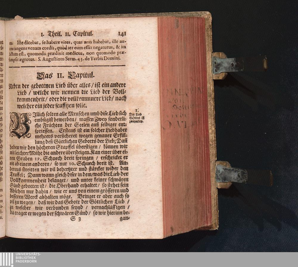 Göttlicher Liebs-Zeiger/ Das ist: Vollkommniste und außerlesniste Anleitung Zur Göttlichen Lieb : In unterschidlichen schönen Discursen/ Historien/ Sinn- und Lehr-reichen Concepten auß H. Schrifft/ denen heiligen Vättern und andern geistreichen Lehrern/ Zu embsiger Nachfolg beyderley Geschlechts/ jeglichen Stands/ Geistlich- und Weltlichen Liebhabern Gottes; Wie auch Zu höchst dienlichem Gebrauch so wohl in denen Clöstern über Tisch oder sonsten zu lesen; als auch denen Pfarrherren und Seelsorgern/ in denen Hertzen ihrer untergebenen Schäfflein die Lieb gegen Gott einzupflantzen und zu erhalten / anfänglich in Frantzösischer und Lateinischer Sprach vorgetragen von R.P. Petro Pennequin, Societatis Jesu Theologo, anjetzo aber zu desto mehrerer Ausbreitung des Lobs und der Lieb Gottes in das Teutsche übersetzet von R.P. Antonio Muzenhard, Regulierten Chor-Herrn zum H. Creutz in Augspurg