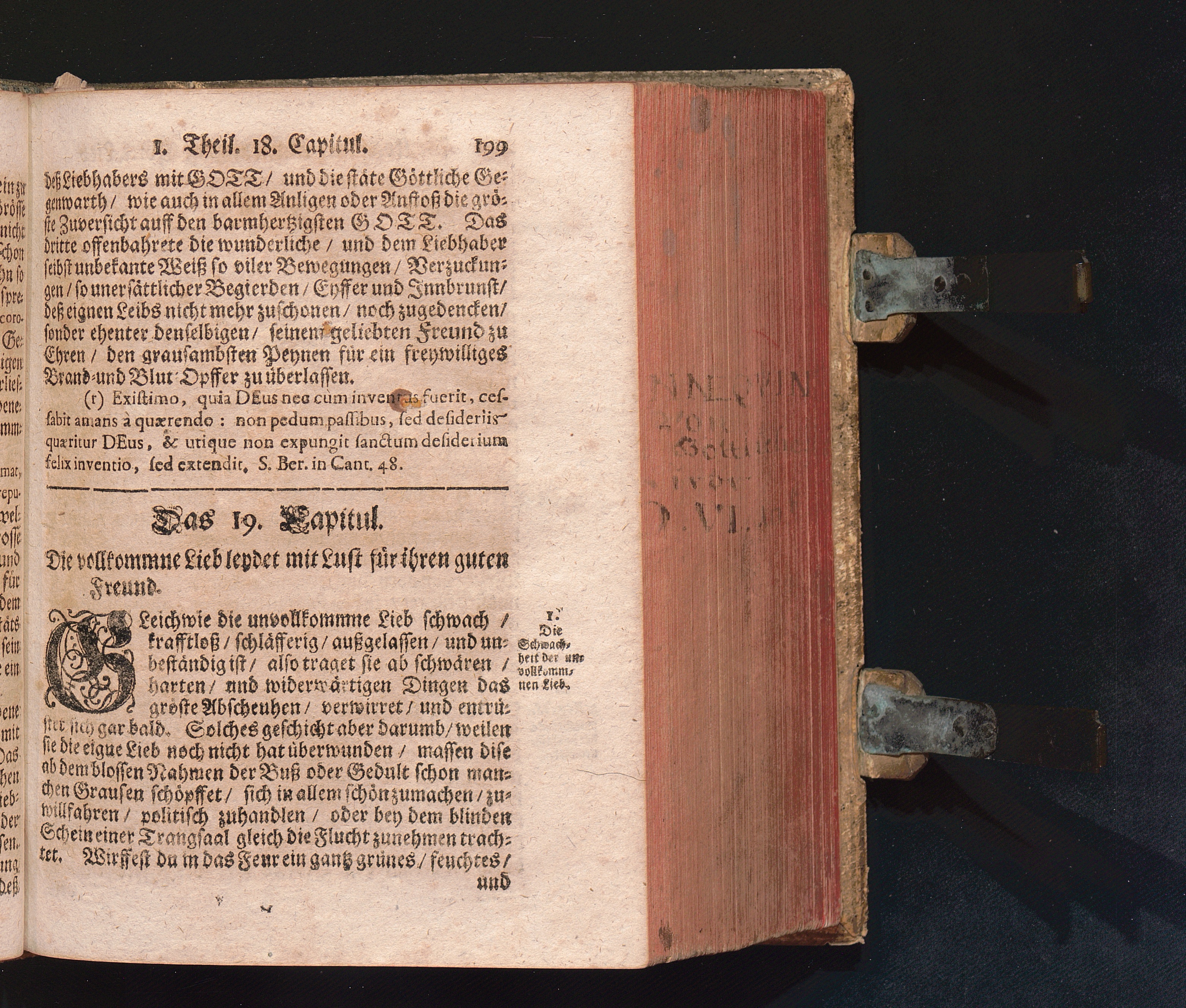 Göttlicher Liebs-Zeiger/ Das ist: Vollkommniste und außerlesniste Anleitung Zur Göttlichen Lieb : In unterschidlichen schönen Discursen/ Historien/ Sinn- und Lehr-reichen Concepten auß H. Schrifft/ denen heiligen Vättern und andern geistreichen Lehrern/ Zu embsiger Nachfolg beyderley Geschlechts/ jeglichen Stands/ Geistlich- und Weltlichen Liebhabern Gottes; Wie auch Zu höchst dienlichem Gebrauch so wohl in denen Clöstern über Tisch oder sonsten zu lesen; als auch denen Pfarrherren und Seelsorgern/ in denen Hertzen ihrer untergebenen Schäfflein die Lieb gegen Gott einzupflantzen und zu erhalten / anfänglich in Frantzösischer und Lateinischer Sprach vorgetragen von R.P. Petro Pennequin, Societatis Jesu Theologo, anjetzo aber zu desto mehrerer Ausbreitung des Lobs und der Lieb Gottes in das Teutsche übersetzet von R.P. Antonio Muzenhard, Regulierten Chor-Herrn zum H. Creutz in Augspurg