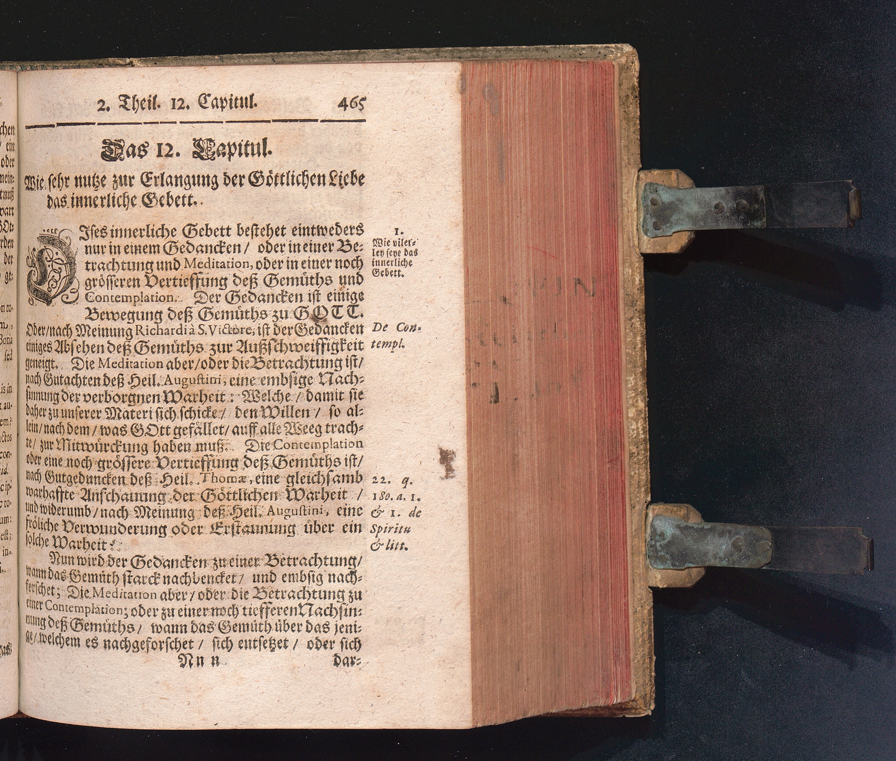Göttlicher Liebs-Zeiger/ Das ist: Vollkommniste und außerlesniste Anleitung Zur Göttlichen Lieb : In unterschidlichen schönen Discursen/ Historien/ Sinn- und Lehr-reichen Concepten auß H. Schrifft/ denen heiligen Vättern und andern geistreichen Lehrern/ Zu embsiger Nachfolg beyderley Geschlechts/ jeglichen Stands/ Geistlich- und Weltlichen Liebhabern Gottes; Wie auch Zu höchst dienlichem Gebrauch so wohl in denen Clöstern über Tisch oder sonsten zu lesen; als auch denen Pfarrherren und Seelsorgern/ in denen Hertzen ihrer untergebenen Schäfflein die Lieb gegen Gott einzupflantzen und zu erhalten / anfänglich in Frantzösischer und Lateinischer Sprach vorgetragen von R.P. Petro Pennequin, Societatis Jesu Theologo, anjetzo aber zu desto mehrerer Ausbreitung des Lobs und der Lieb Gottes in das Teutsche übersetzet von R.P. Antonio Muzenhard, Regulierten Chor-Herrn zum H. Creutz in Augspurg