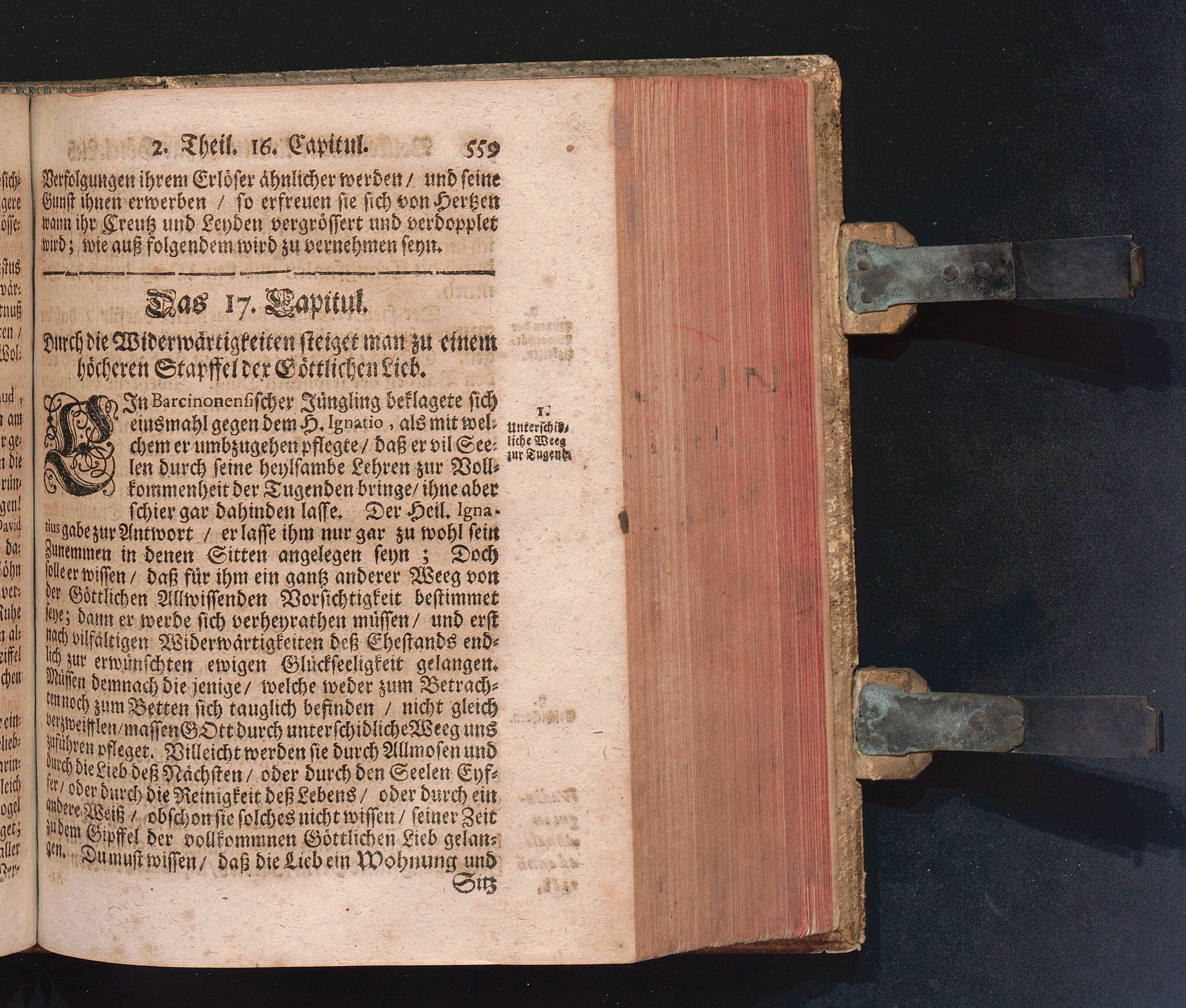 Göttlicher Liebs-Zeiger/ Das ist: Vollkommniste und außerlesniste Anleitung Zur Göttlichen Lieb : In unterschidlichen schönen Discursen/ Historien/ Sinn- und Lehr-reichen Concepten auß H. Schrifft/ denen heiligen Vättern und andern geistreichen Lehrern/ Zu embsiger Nachfolg beyderley Geschlechts/ jeglichen Stands/ Geistlich- und Weltlichen Liebhabern Gottes; Wie auch Zu höchst dienlichem Gebrauch so wohl in denen Clöstern über Tisch oder sonsten zu lesen; als auch denen Pfarrherren und Seelsorgern/ in denen Hertzen ihrer untergebenen Schäfflein die Lieb gegen Gott einzupflantzen und zu erhalten / anfänglich in Frantzösischer und Lateinischer Sprach vorgetragen von R.P. Petro Pennequin, Societatis Jesu Theologo, anjetzo aber zu desto mehrerer Ausbreitung des Lobs und der Lieb Gottes in das Teutsche übersetzet von R.P. Antonio Muzenhard, Regulierten Chor-Herrn zum H. Creutz in Augspurg
