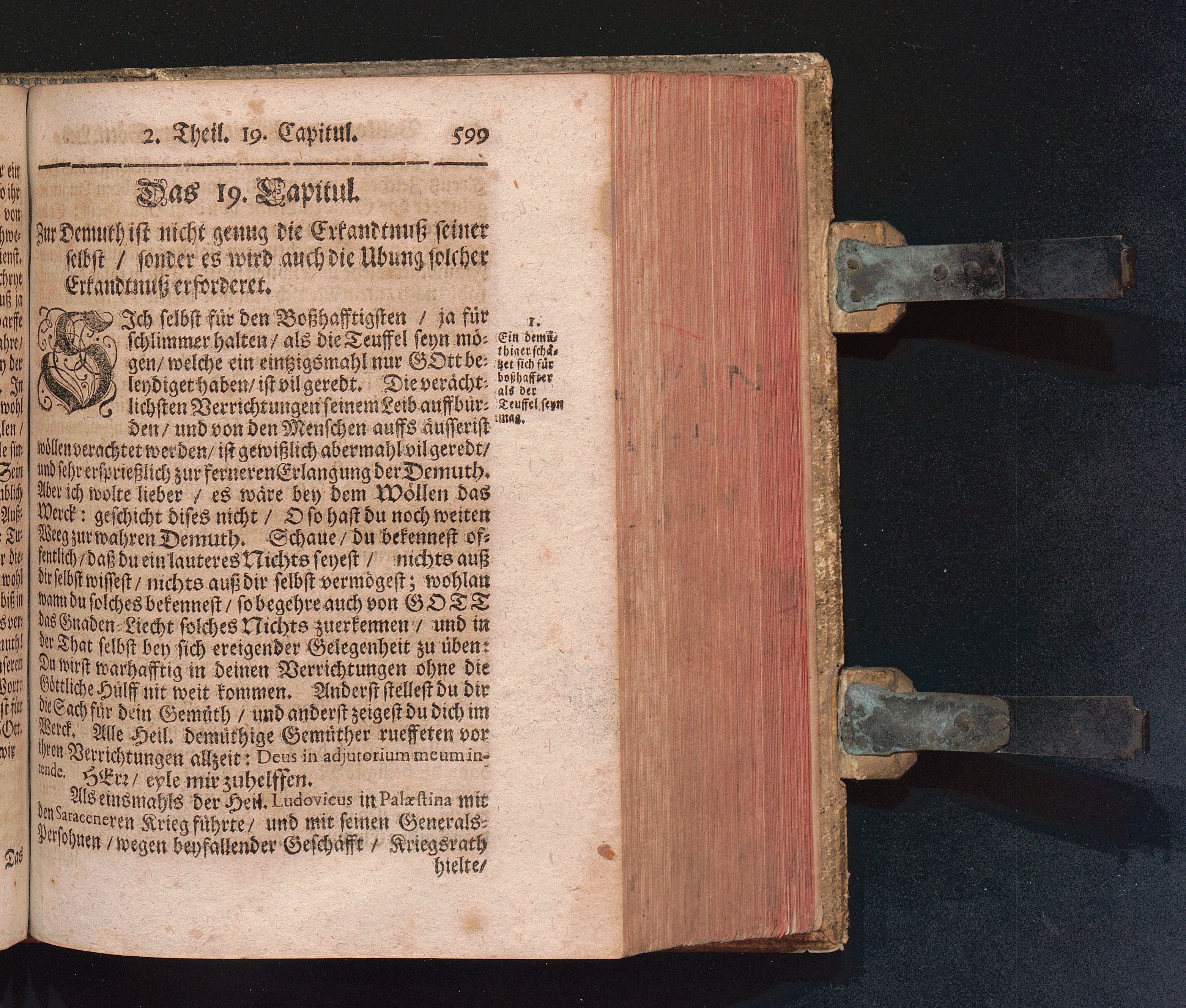 Göttlicher Liebs-Zeiger/ Das ist: Vollkommniste und außerlesniste Anleitung Zur Göttlichen Lieb : In unterschidlichen schönen Discursen/ Historien/ Sinn- und Lehr-reichen Concepten auß H. Schrifft/ denen heiligen Vättern und andern geistreichen Lehrern/ Zu embsiger Nachfolg beyderley Geschlechts/ jeglichen Stands/ Geistlich- und Weltlichen Liebhabern Gottes; Wie auch Zu höchst dienlichem Gebrauch so wohl in denen Clöstern über Tisch oder sonsten zu lesen; als auch denen Pfarrherren und Seelsorgern/ in denen Hertzen ihrer untergebenen Schäfflein die Lieb gegen Gott einzupflantzen und zu erhalten / anfänglich in Frantzösischer und Lateinischer Sprach vorgetragen von R.P. Petro Pennequin, Societatis Jesu Theologo, anjetzo aber zu desto mehrerer Ausbreitung des Lobs und der Lieb Gottes in das Teutsche übersetzet von R.P. Antonio Muzenhard, Regulierten Chor-Herrn zum H. Creutz in Augspurg