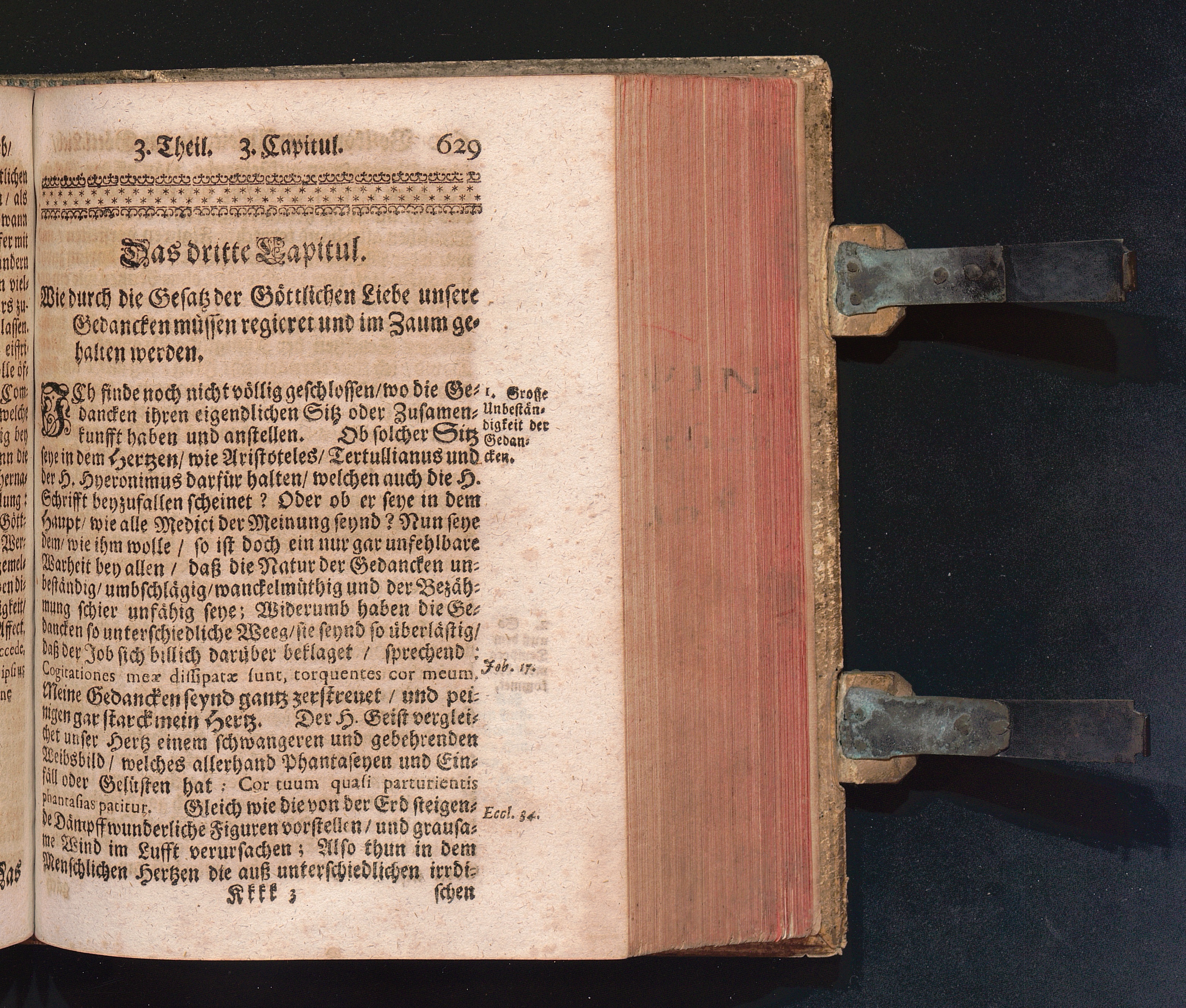 Göttlicher Liebs-Zeiger/ Das ist: Vollkommniste und außerlesniste Anleitung Zur Göttlichen Lieb : In unterschidlichen schönen Discursen/ Historien/ Sinn- und Lehr-reichen Concepten auß H. Schrifft/ denen heiligen Vättern und andern geistreichen Lehrern/ Zu embsiger Nachfolg beyderley Geschlechts/ jeglichen Stands/ Geistlich- und Weltlichen Liebhabern Gottes; Wie auch Zu höchst dienlichem Gebrauch so wohl in denen Clöstern über Tisch oder sonsten zu lesen; als auch denen Pfarrherren und Seelsorgern/ in denen Hertzen ihrer untergebenen Schäfflein die Lieb gegen Gott einzupflantzen und zu erhalten / anfänglich in Frantzösischer und Lateinischer Sprach vorgetragen von R.P. Petro Pennequin, Societatis Jesu Theologo, anjetzo aber zu desto mehrerer Ausbreitung des Lobs und der Lieb Gottes in das Teutsche übersetzet von R.P. Antonio Muzenhard, Regulierten Chor-Herrn zum H. Creutz in Augspurg