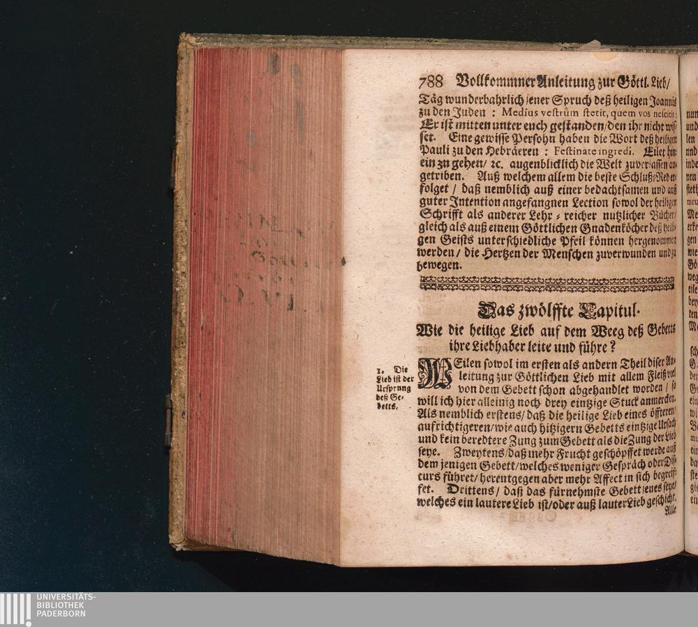 Göttlicher Liebs-Zeiger/ Das ist: Vollkommniste und außerlesniste Anleitung Zur Göttlichen Lieb : In unterschidlichen schönen Discursen/ Historien/ Sinn- und Lehr-reichen Concepten auß H. Schrifft/ denen heiligen Vättern und andern geistreichen Lehrern/ Zu embsiger Nachfolg beyderley Geschlechts/ jeglichen Stands/ Geistlich- und Weltlichen Liebhabern Gottes; Wie auch Zu höchst dienlichem Gebrauch so wohl in denen Clöstern über Tisch oder sonsten zu lesen; als auch denen Pfarrherren und Seelsorgern/ in denen Hertzen ihrer untergebenen Schäfflein die Lieb gegen Gott einzupflantzen und zu erhalten / anfänglich in Frantzösischer und Lateinischer Sprach vorgetragen von R.P. Petro Pennequin, Societatis Jesu Theologo, anjetzo aber zu desto mehrerer Ausbreitung des Lobs und der Lieb Gottes in das Teutsche übersetzet von R.P. Antonio Muzenhard, Regulierten Chor-Herrn zum H. Creutz in Augspurg