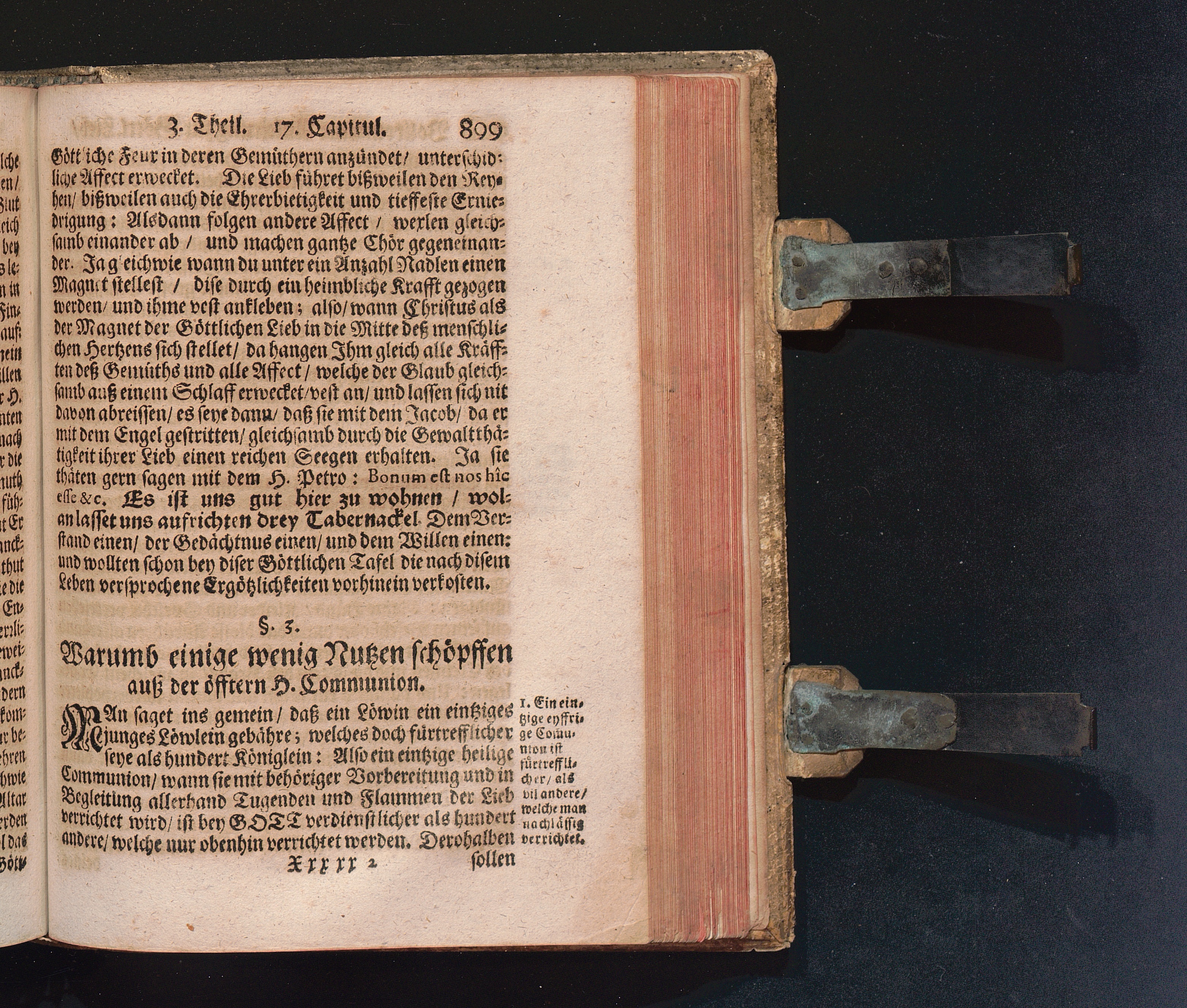 Göttlicher Liebs-Zeiger/ Das ist: Vollkommniste und außerlesniste Anleitung Zur Göttlichen Lieb : In unterschidlichen schönen Discursen/ Historien/ Sinn- und Lehr-reichen Concepten auß H. Schrifft/ denen heiligen Vättern und andern geistreichen Lehrern/ Zu embsiger Nachfolg beyderley Geschlechts/ jeglichen Stands/ Geistlich- und Weltlichen Liebhabern Gottes; Wie auch Zu höchst dienlichem Gebrauch so wohl in denen Clöstern über Tisch oder sonsten zu lesen; als auch denen Pfarrherren und Seelsorgern/ in denen Hertzen ihrer untergebenen Schäfflein die Lieb gegen Gott einzupflantzen und zu erhalten / anfänglich in Frantzösischer und Lateinischer Sprach vorgetragen von R.P. Petro Pennequin, Societatis Jesu Theologo, anjetzo aber zu desto mehrerer Ausbreitung des Lobs und der Lieb Gottes in das Teutsche übersetzet von R.P. Antonio Muzenhard, Regulierten Chor-Herrn zum H. Creutz in Augspurg