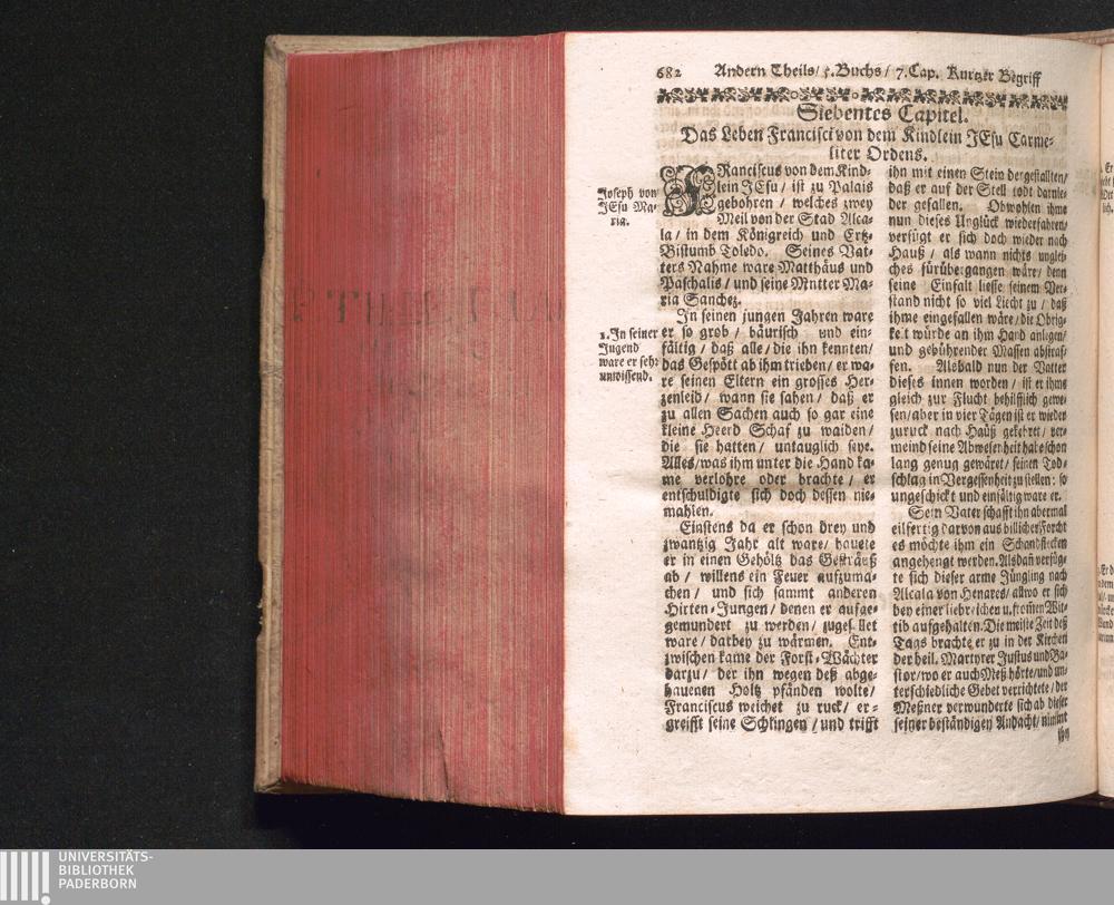 Sibendes Capittel. Leben Francisci vom Kindlein Jesu auß den[n] Brüdern der Carm[...]