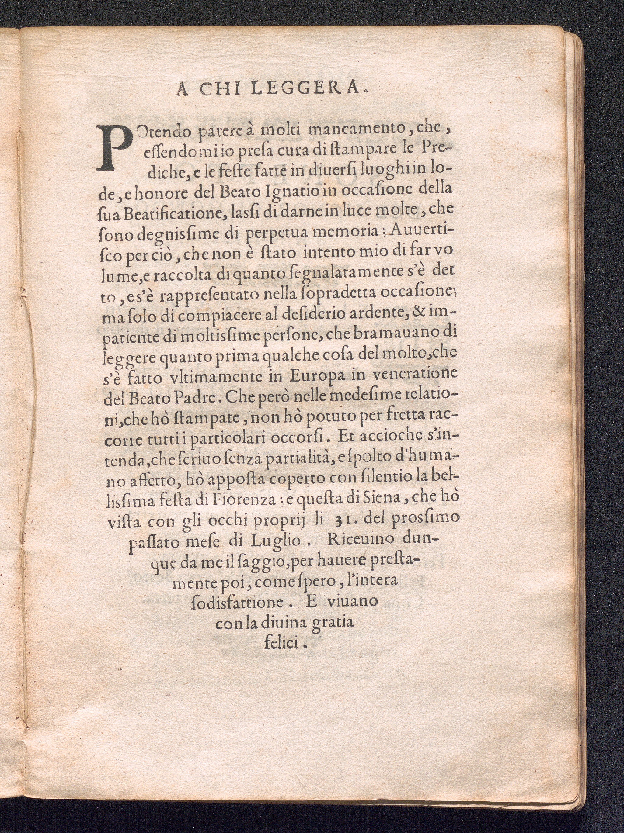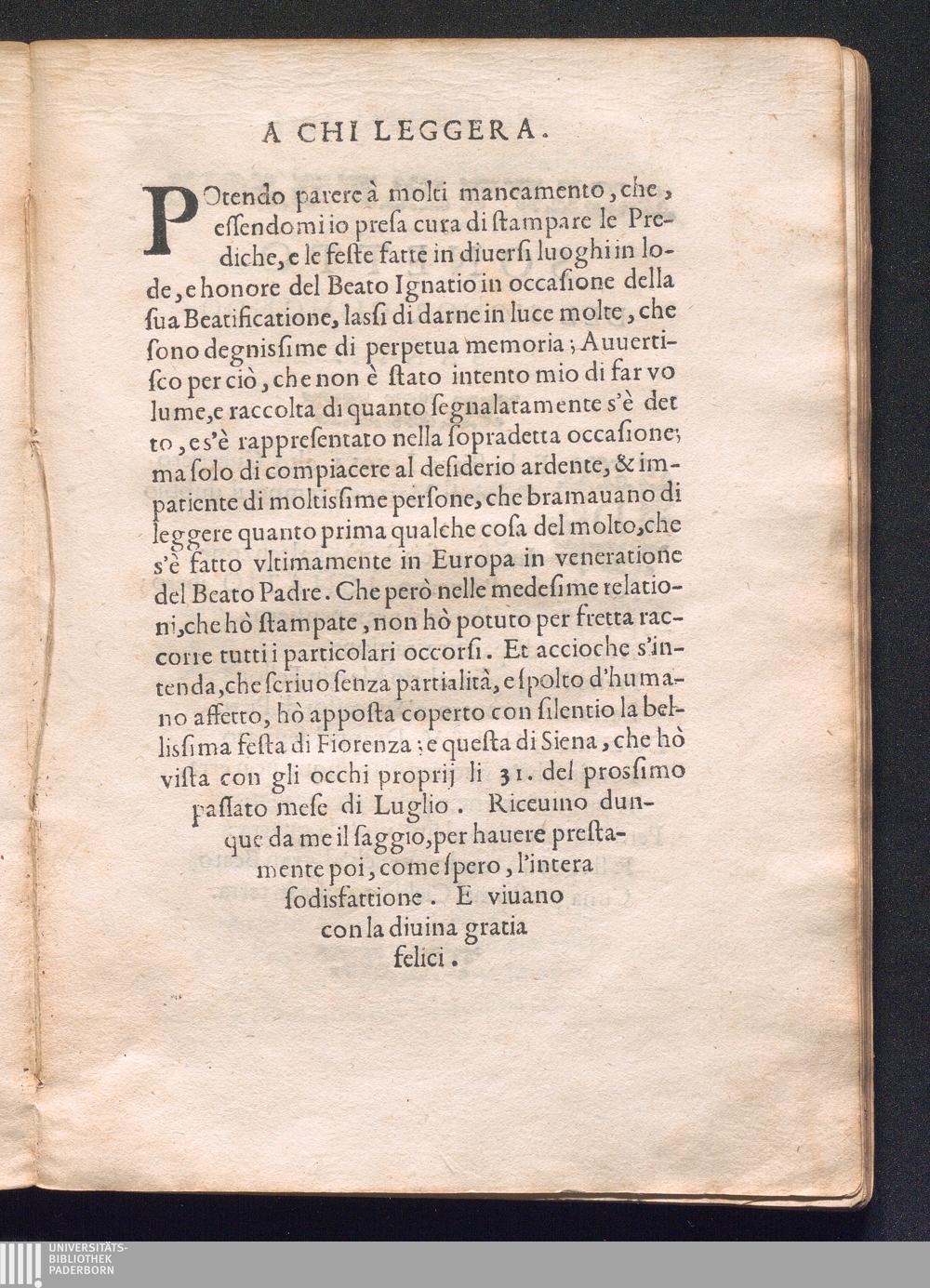 Relatione Delle Feste Fatte Nella Citta Di Lisbona In Portogallo Per prima festa del Beato Ignatio di Loiola, fondatore della Compagnia di Giesv, celebrata alli trenta di Gennaro 1610. Scritta da vn Gentilhuomo Italiano, che fù presente, ad vn'altro suo amico.