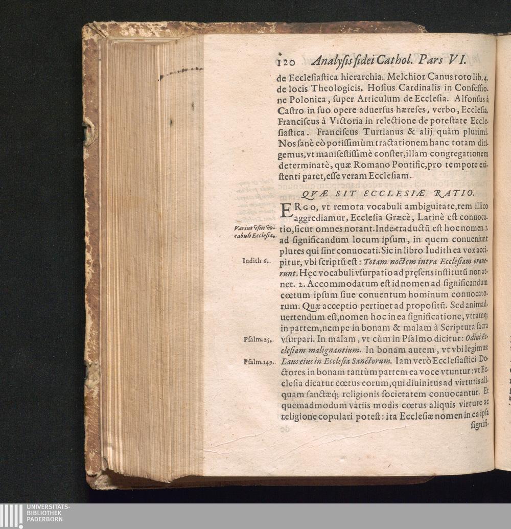 ANALYSIS|| FIDEI CA=||THOLICAE,|| : HOC EST,|| RATIO METHODICA|| EAM IN VNIVERSVM FIDEM|| EX CERTIS PRINCIPIIS PROBANDI, QVAM|| sancta Romana Ecclesia, aduersus multipli-||ces Sectariorum errores,|| profitetur.|| Cum triplici INDICE, Scripturarum, Rerum Et peculiari-||ter eorum argumentorum, quæ euidentius ostendunt,|| omnes, quotquot fidei Romanæ Ecclesiæ repugnant, ab-||errare à vera & Catholica Religione.|| / AVCTORE GREGORIO DE VALENTIA,|| SOCIETATIS JESV||