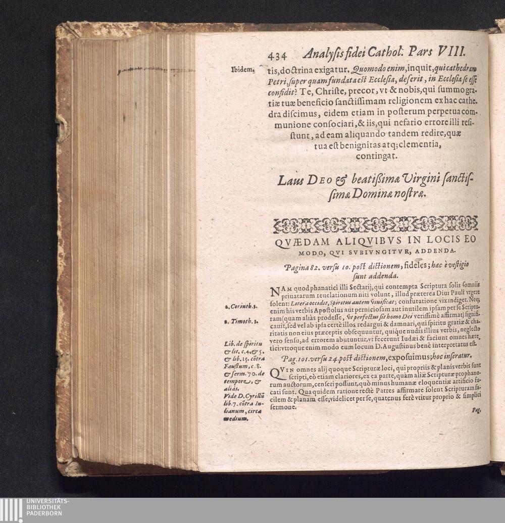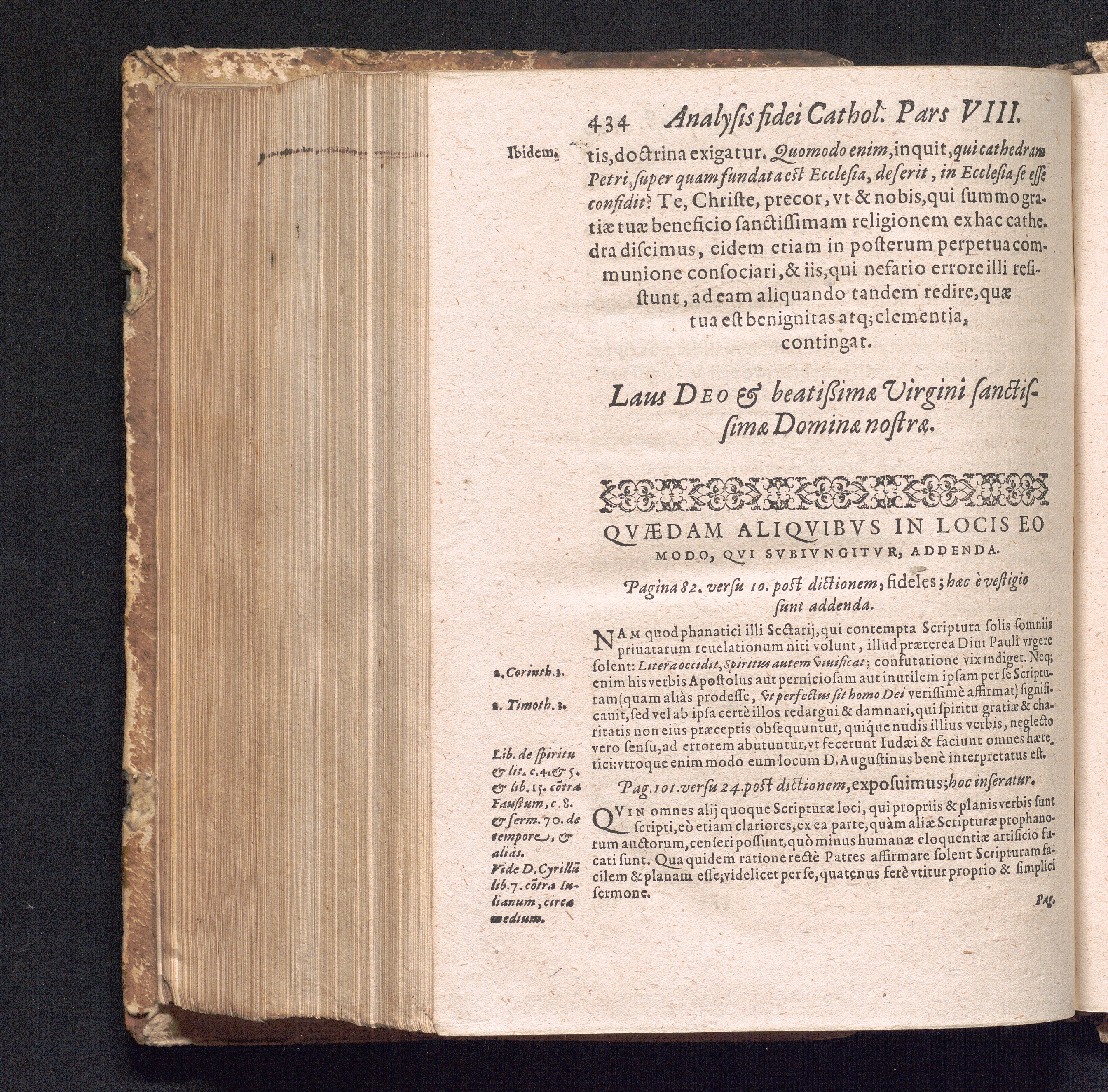 ANALYSIS|| FIDEI CA=||THOLICAE,|| : HOC EST,|| RATIO METHODICA|| EAM IN VNIVERSVM FIDEM|| EX CERTIS PRINCIPIIS PROBANDI, QVAM|| sancta Romana Ecclesia, aduersus multipli-||ces Sectariorum errores,|| profitetur.|| Cum triplici INDICE, Scripturarum, Rerum Et peculiari-||ter eorum argumentorum, quæ euidentius ostendunt,|| omnes, quotquot fidei Romanæ Ecclesiæ repugnant, ab-||errare à vera & Catholica Religione.|| / AVCTORE GREGORIO DE VALENTIA,|| SOCIETATIS JESV||