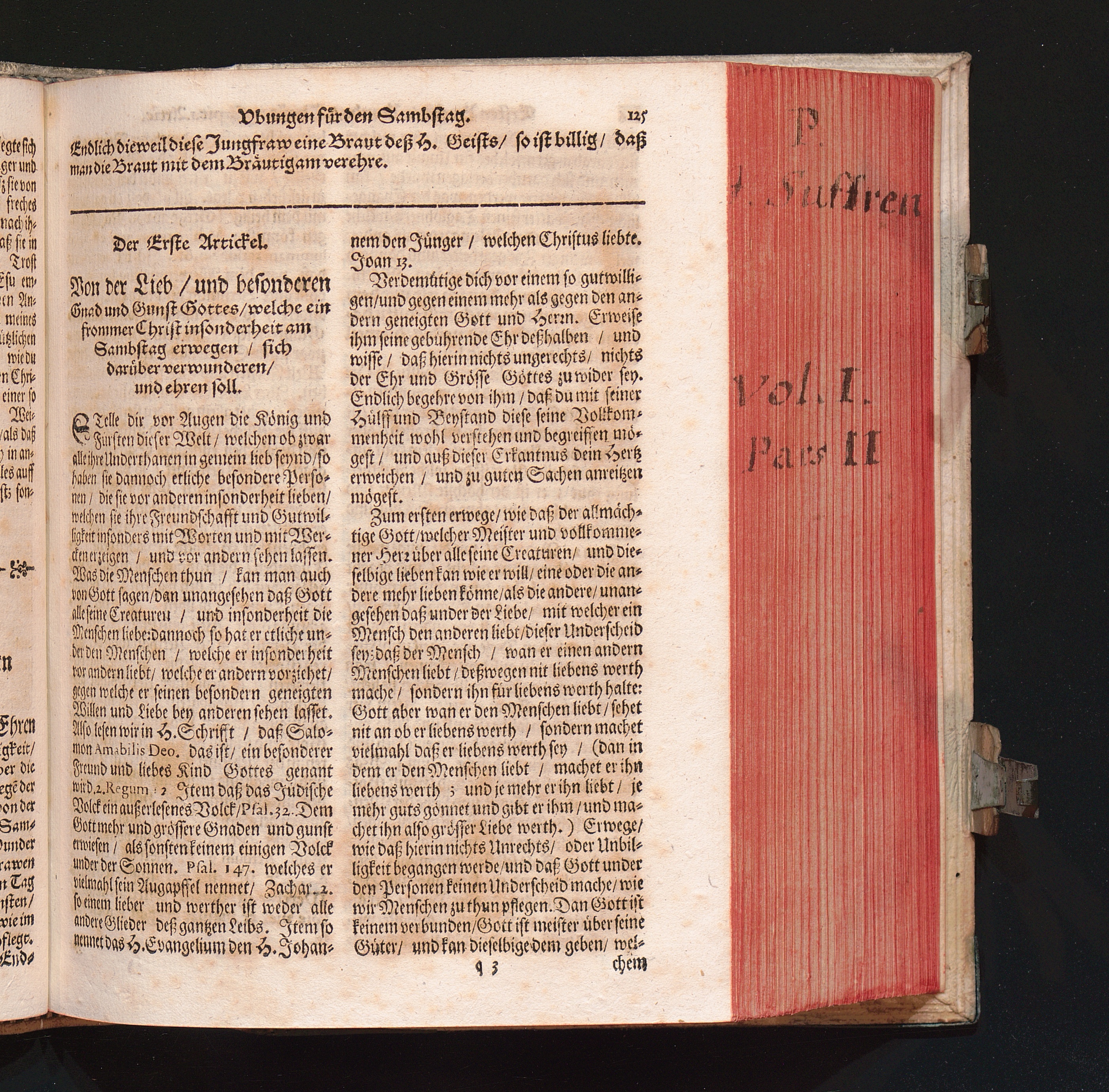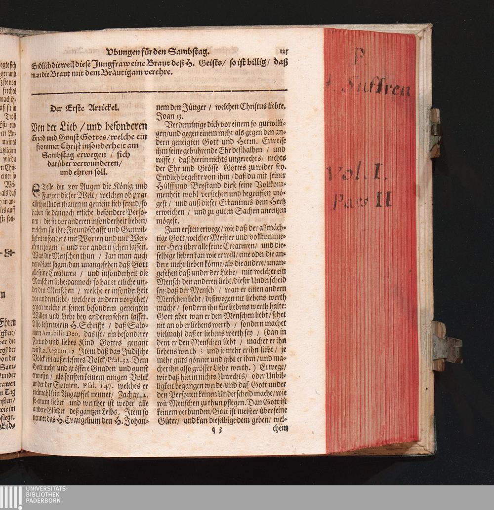 1. Artickel. am Sambstag. Von der Lieb und besondern Gnad / welche ein Christ am[...]