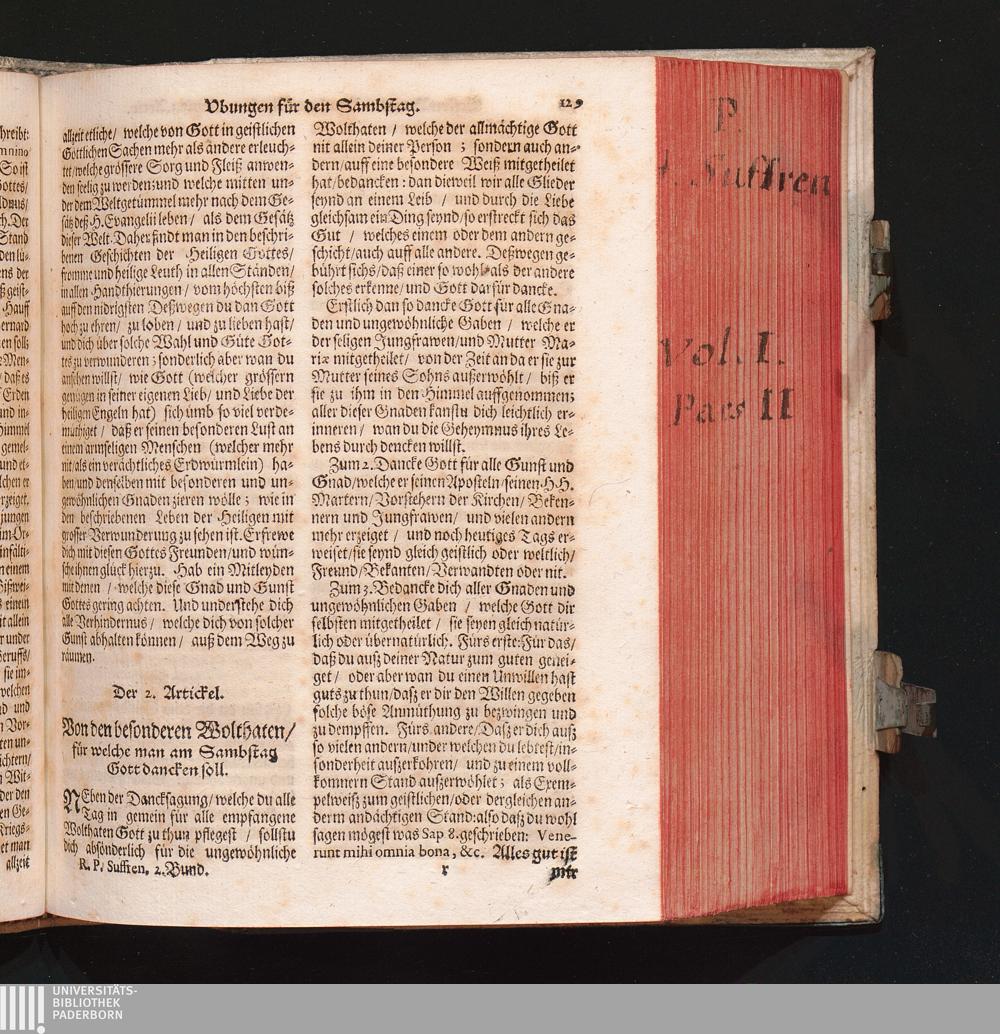 2. Artickel. Besondere Wolthaten / für welche man Gott am Sambstag dancken soll.