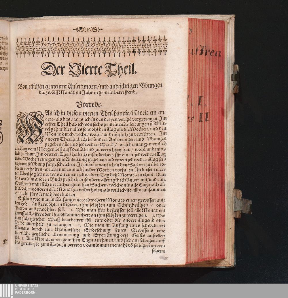 Der vierte Theil. Von etlichen gemeinen Anleitungen und andächtigen Vbungen/ die[...]