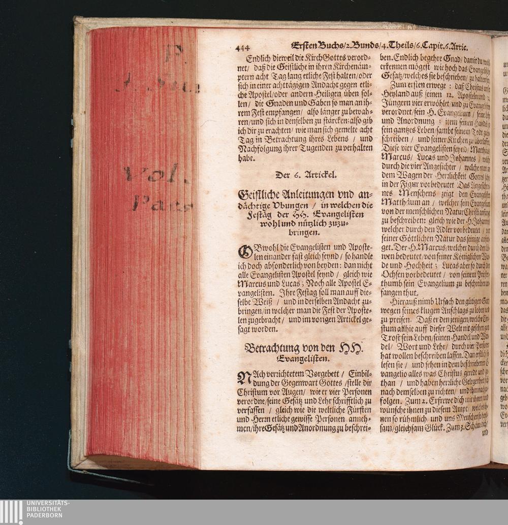6. Artickel. Geistliche Anleitung/ wie die Fest der Evangelisten zu feyren.