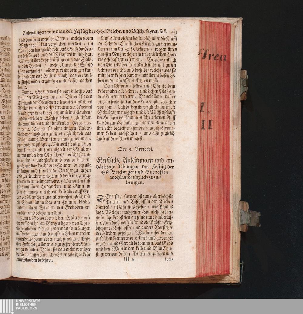 9. Artickel. Wie man sich an den Festägen der Beichtiger und Bischoffen zu verhalten[...]