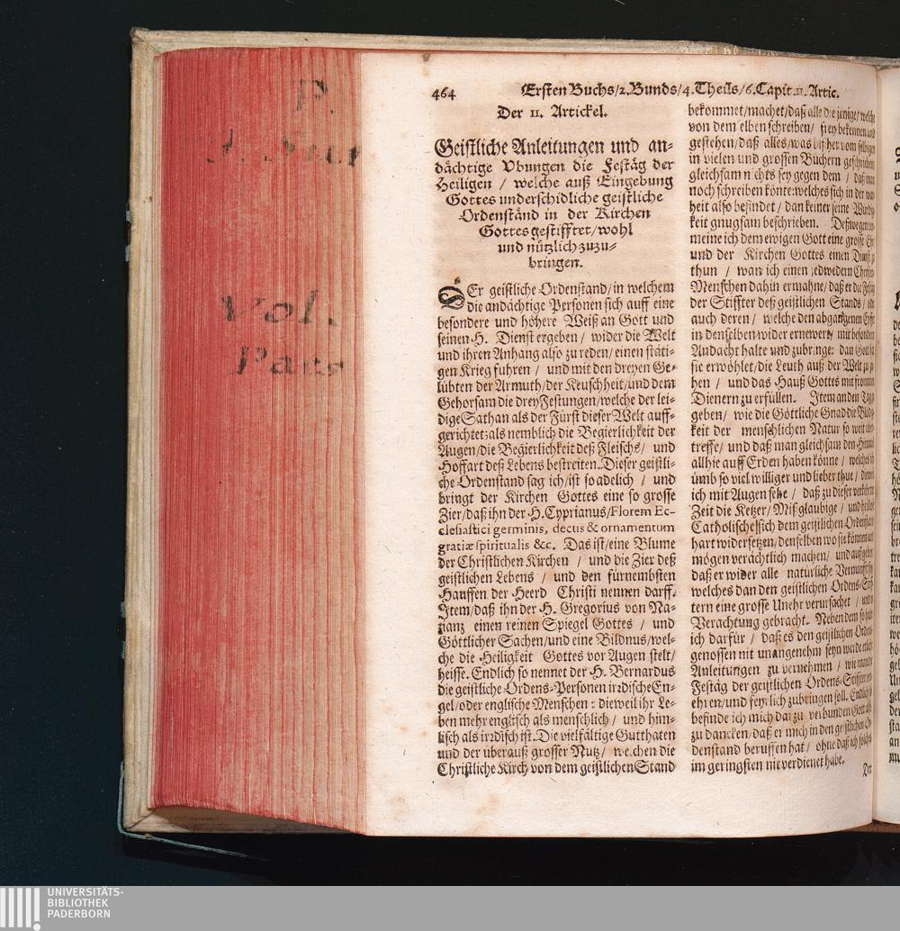 11. Artickel. Geistliche Anleitungen und Ubungen/ die Festäg der Heiligen/ welche[...]
