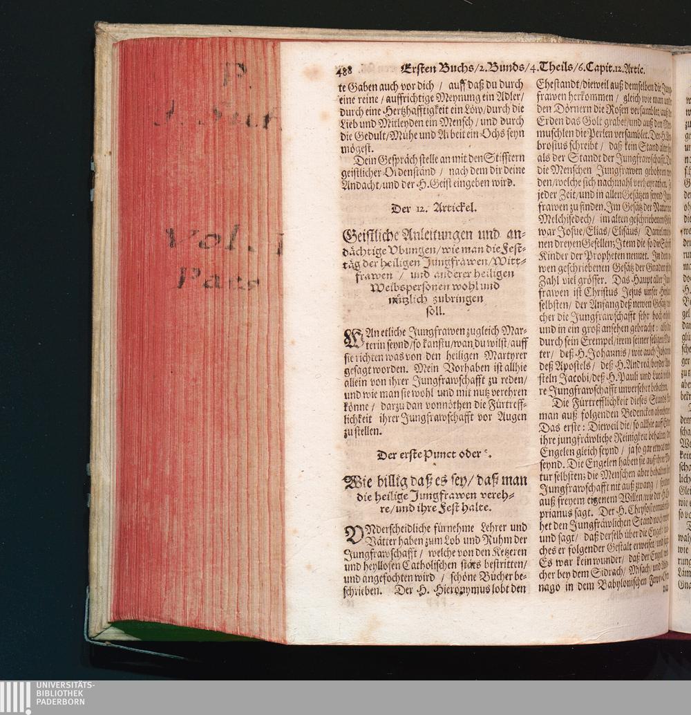 12. Artickel. Wie man die Festäg der heiligen Jungfrawen/ Witfrawen/ und anderer[...]