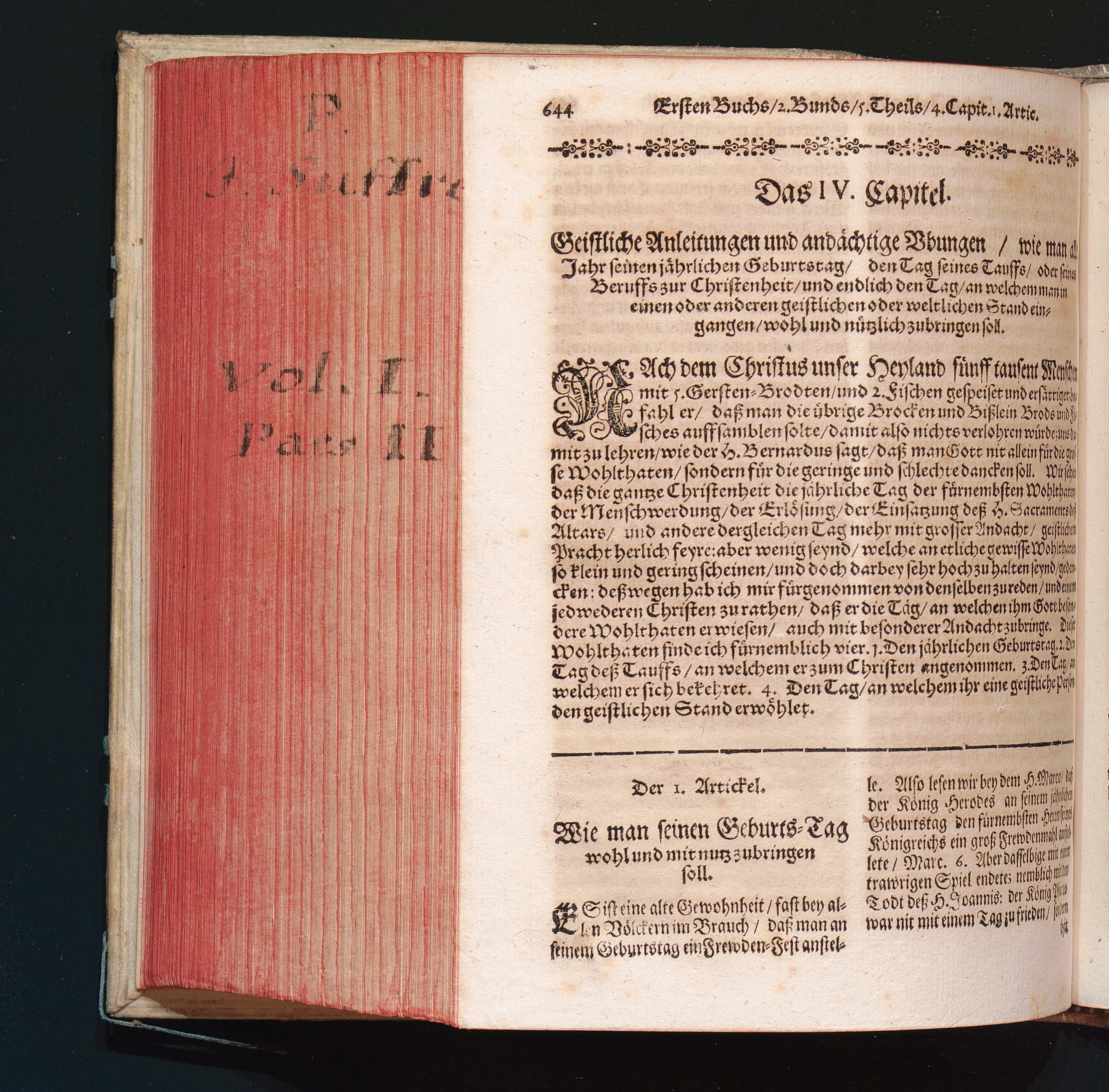1. Artickel. Wie man seinen Geburts-tag wohl halten/ und mit Nutz zubringen soll[...]
