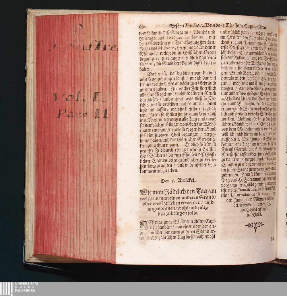 5. Artickel. Wie man jährlich den Tag/ an welchem man einen andern Stand oder Weiß[...]